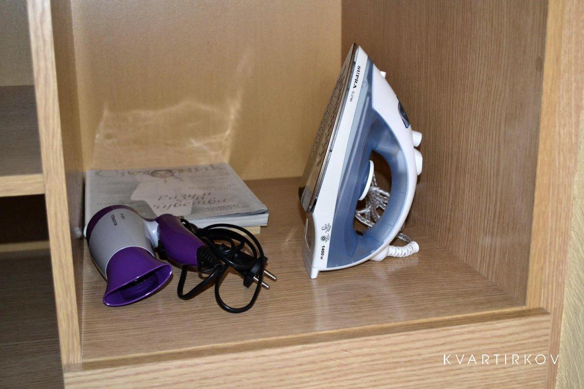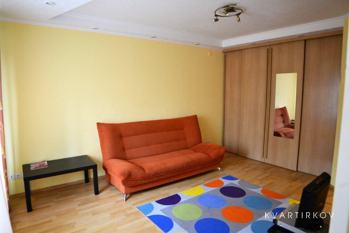 Euro Repair Easy new furniture, as well as household appliances. The apartment is located a soft sofa for comfortable sleeping, as well as a handy clamshell, coffee table, large closet for placing personal items, tables, LCD TV with cable TV. The apartment is conducted online, in the kitchen: kitchen, washing machine, microwave, gas cooker, fridge, kitchen chair and soft chairs.