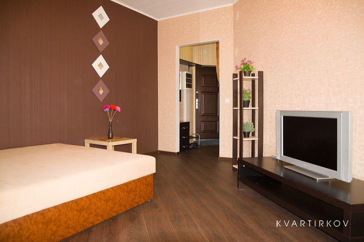 The panoramic glazing of the loggia and the high floor allows you to enjoy the panorama of evening Yekaterinburg in our apartment. Also for your convenience in the nearby houses there are alcohol markets, grocery stores and cafes. In walking distance is the metro station "Chkalovskaya".