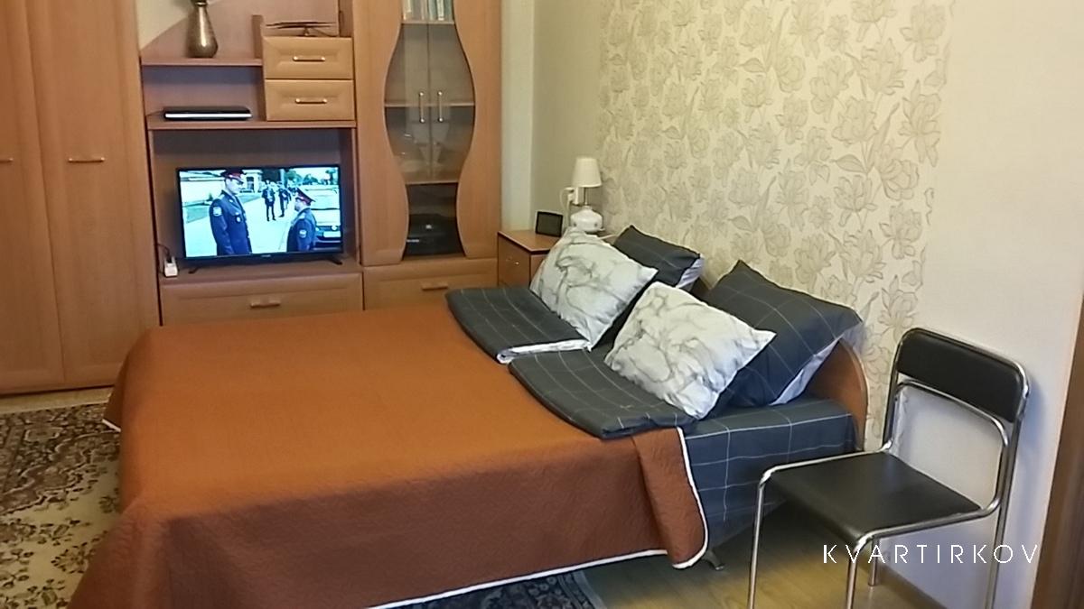 In 15-20 minutes walk - Zoo, Drama Theater, Museum of Amber, Upper Lake, Museum of the World Ocean, Fish Village, Yunost Park, Iriko-Art Museum and Cathedral. Not far from the center - the corps of leading universities in Kaliningrad. Entrance hall, wardrobe, wall, double bed (160-205), armchairs, journal l, chairs. Kitchen furniture, dishes. Shower cabin. Bedding, towels, detergents, microwave, refrigerator, hairdryer, vacuum cleaner, iron, ironing board. TV, DVD, Wi-Fi. Possibility of additional bed (folding couch). Windows in the yard. Smoking only on the balcony. Obligatory observance of order and silence at night. The apartment is not designed for parties and parties, it is located in a residential building. Without animals. Wet cleaning after each guest and clean bedding are guaranteed. Additional cleaning during the rental period - on request and at an additional cost. Booking without prepayment. The minimum number of days of rent is 3 days. Comfortable. Reliable. Inexpensive! The cost depends on the season, the number of guests and the length of stay. The price is indicated for the whole apartment in Russian rubles: 1 200 r. per night, includes accommodation not more than 2 guests from 3 to 5 days; 1 100 р. for a day, for stays of no more than 2 guests from 6 to 10 days; 1,000 r. for a day, for a stay of no more than 2 guests over 10 days; 200 r. per day - surcharge for each additional guest over 2. Insurance deposit (returned when leaving) - 2000 rubles.