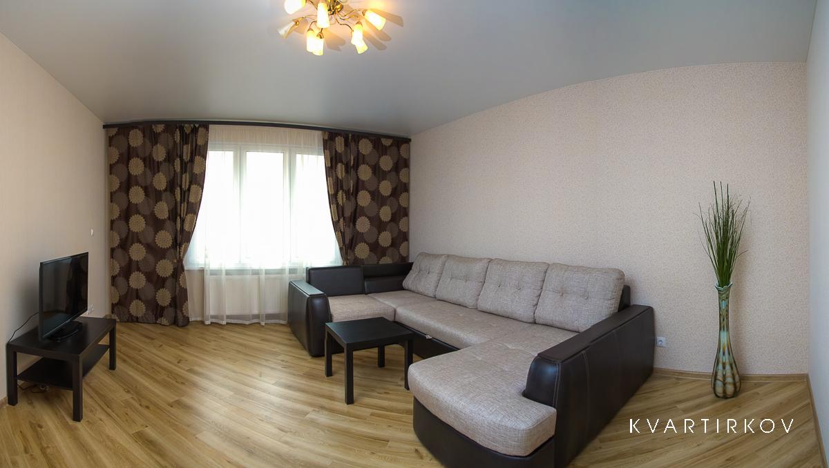 Cozy, large and comfortable 2-bedroom apartment in the most prestigious area of ​​the city. In the immediate vicinity of one of the largest water parks in the world "Riviera" beach with 80-meter swimming pool and cascading the VIP-basins, as well as 5D and 3D movie theaters, a bowling alley, located in the same place: the city's best restaurants, a petting zoo, a fitness club premium class "Planet Fitness", a nightclub «Cinema».