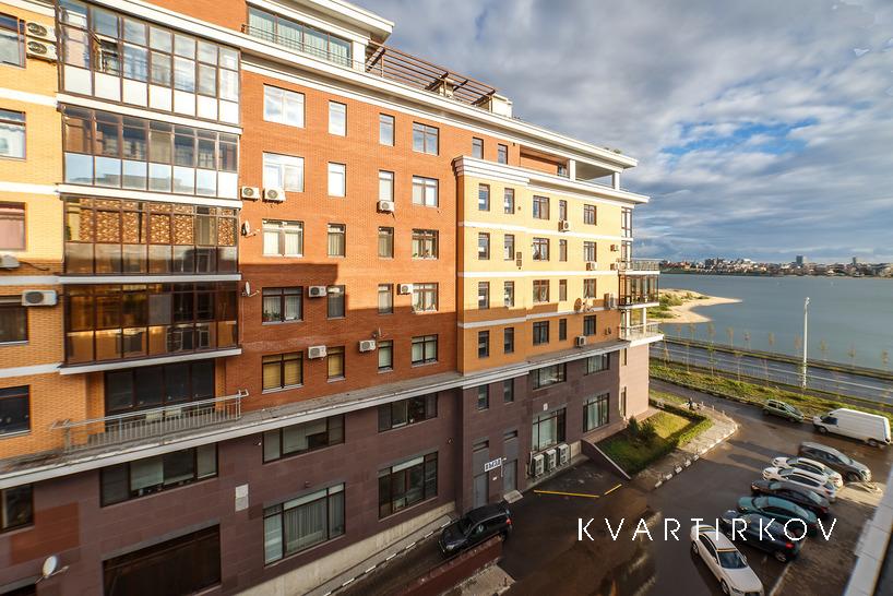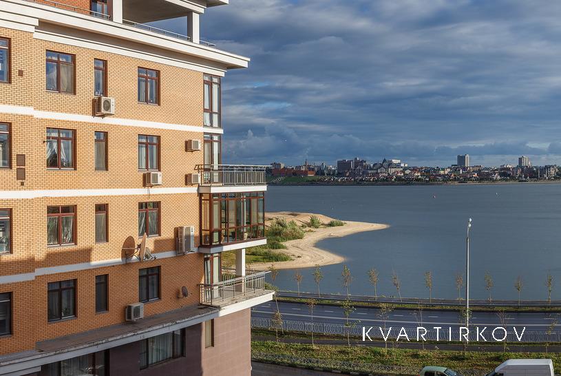 Photo 100% .... Flyer in Aqua Park in net present ... not smoky apartment in the design performance of the elite residential complex "Panorama" with fountains in the courtyard on the 2nd floor and a rich playground for children, the house is on the first waterfront shoreline with beautiful panorama the historical part of the city of Kazan, there is a parking space in the underground parking, food delivery runs to the house .