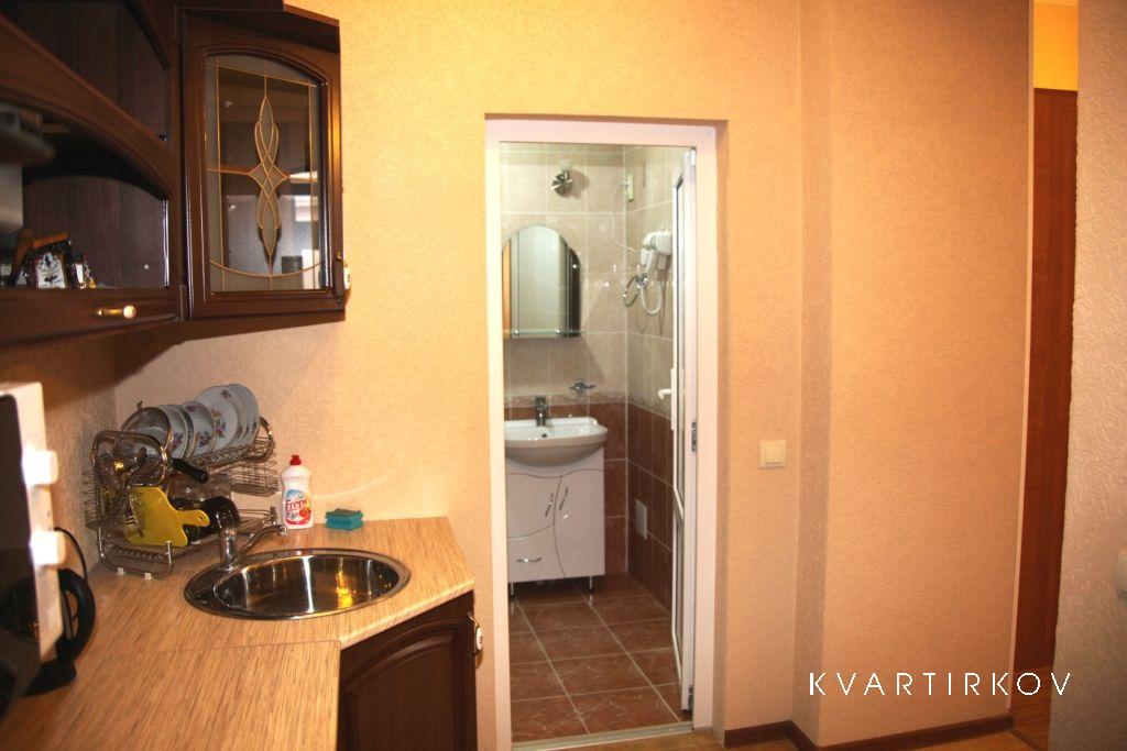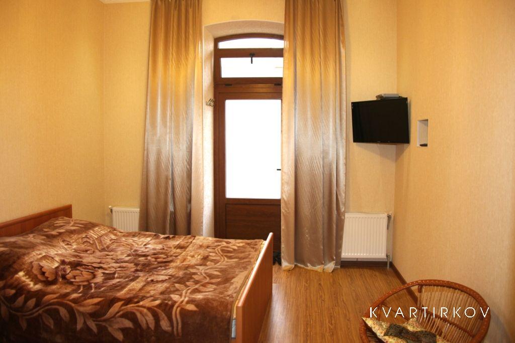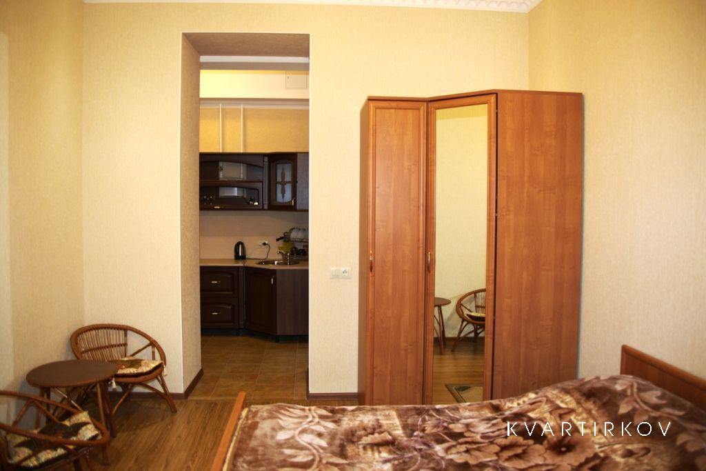 There are two identical (mirror) one-room, well-equipped apartments with separate entrances from the yard, renovated, in 2 steps from the park 150m colonnade, opposite the sanatorium "Kolos", a dining room, the apartment has all the furniture and appliances for a comfortable stay, satellite TV, wi -fi internet, safe, individual heating, underfloor heating, close parking, 3 beds (extra flat single seat couch)