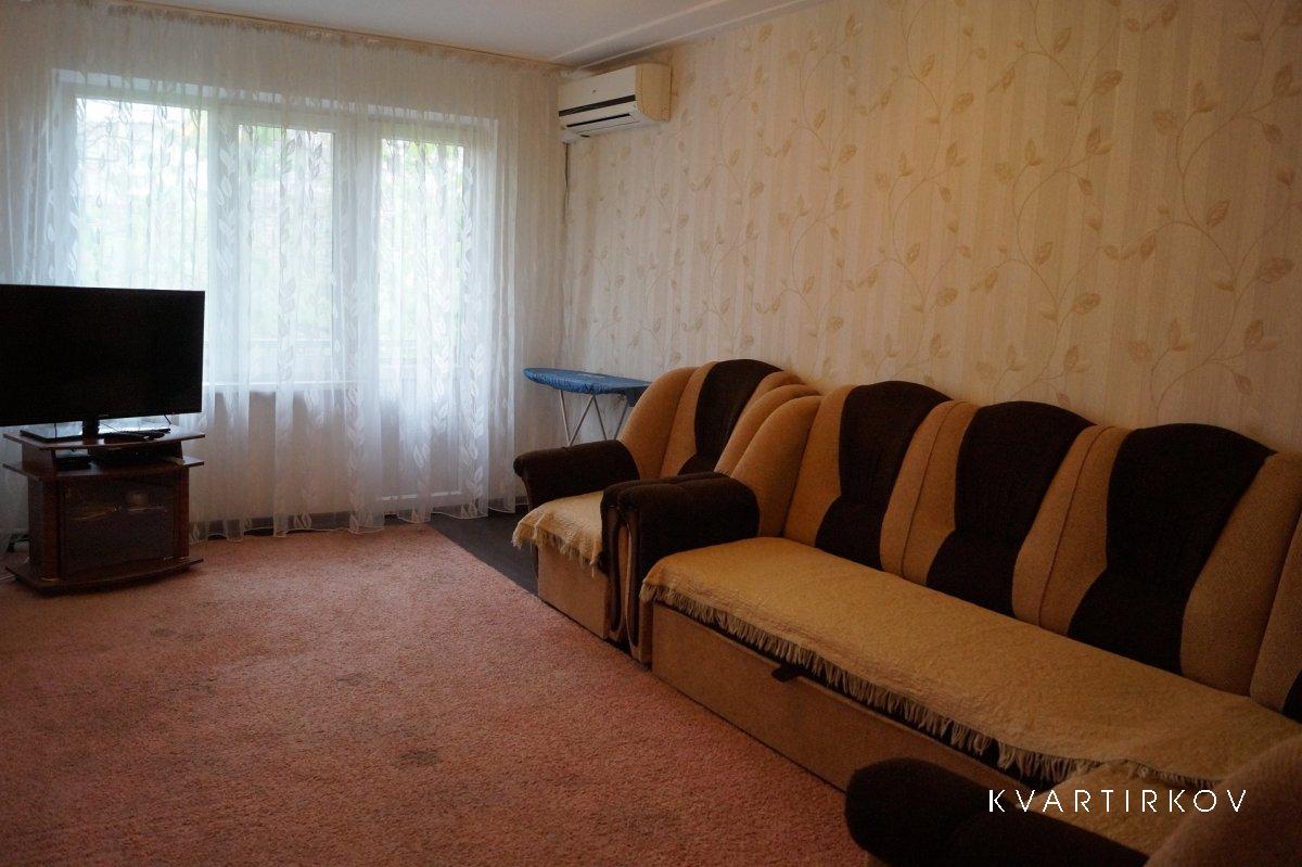 The apartment is equipped with everything necessary for your comfort: refrigerator, microwave oven, el. kettle, plasma TV, air conditioner, washing machine, iron, hair dryer, cable TV, Wi-FI. Green yard, great location, windows on two sides, standard-plan kitchen, excellent repair and a nice design, high quality linens and towels. The apartment is warm and bright. Professional cleaning before your settling all the standards of quality and purity. Here you will feel like home - nice and cozy.
