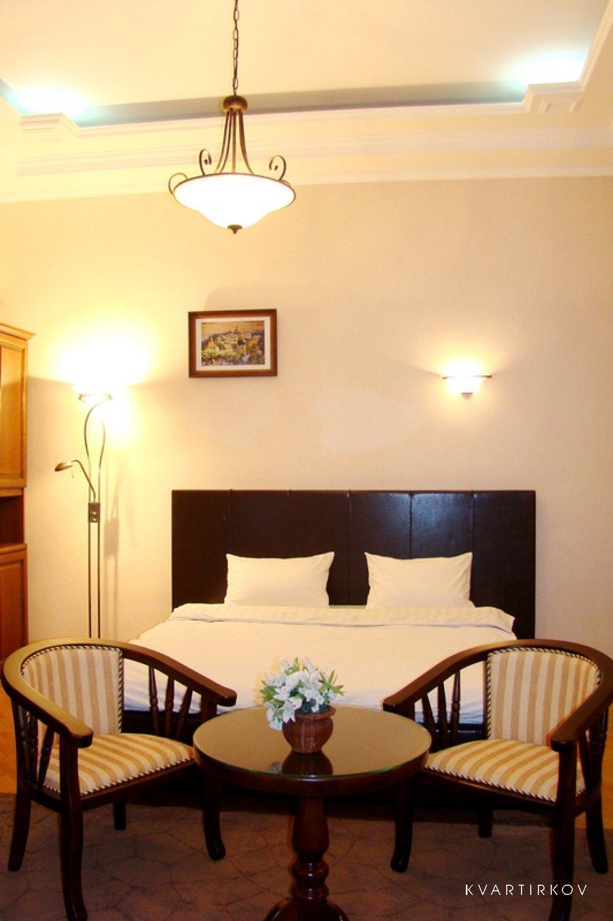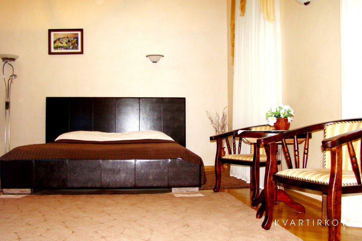 Str.Pushkinskaya 24B, m.Teatralnoe, m.Kreschatik. Studio, after eurorepair 2010. with design elements, the total area of 48 m2 apartment, high ceilings, euro windows, parquet flooring, fitted kitchen, fully furnished and equipped with appliances, unlimited internet WI-FI, private balcony. A huge bed super king size (2,0 * 2,2), orthopedic mattress, 2nd floor, lift, video surveillance.