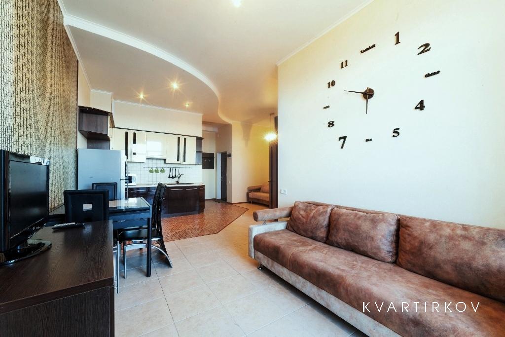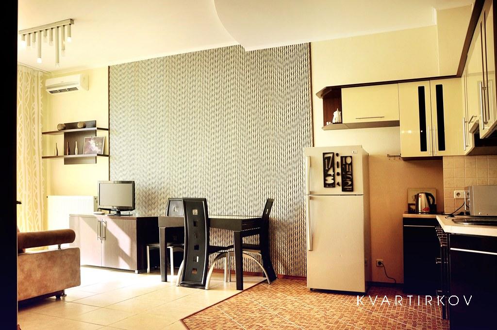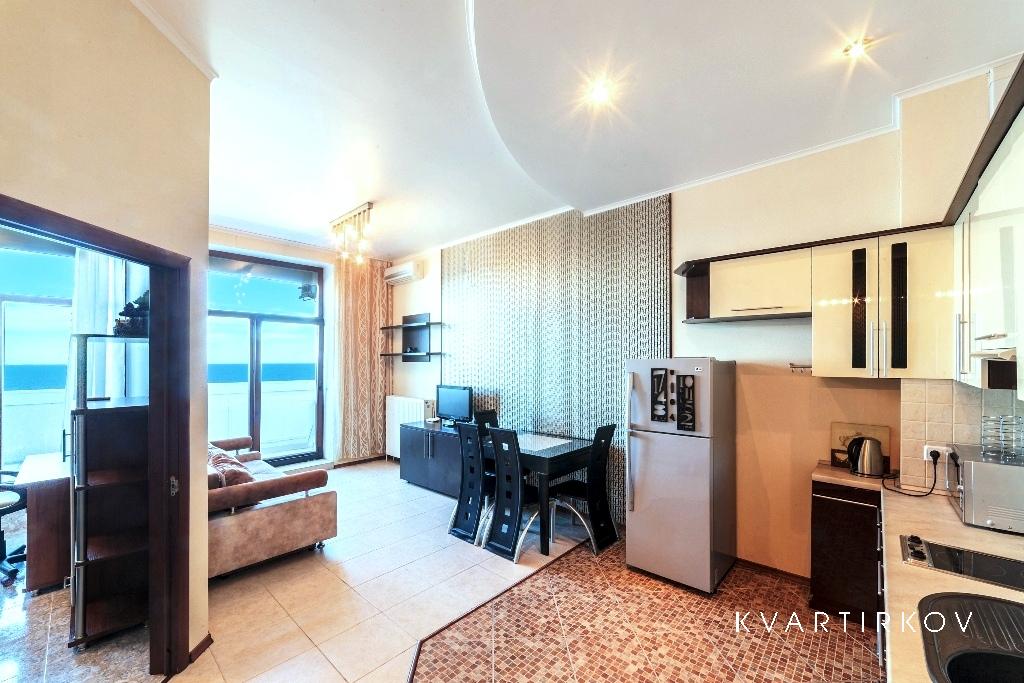 Квартира расположена в элитном жилом комплексе Аркадиевский Дворец на берегу моря. Охраняемая территория, паркинг, автономная система тепло и водоснабжения, панорамное остекление. Комплекс наиболее близко расположен к самому современному и чистому пляжу города Одессы — Аркадия.(ИБИЦА,ИТАКА и т.д.)