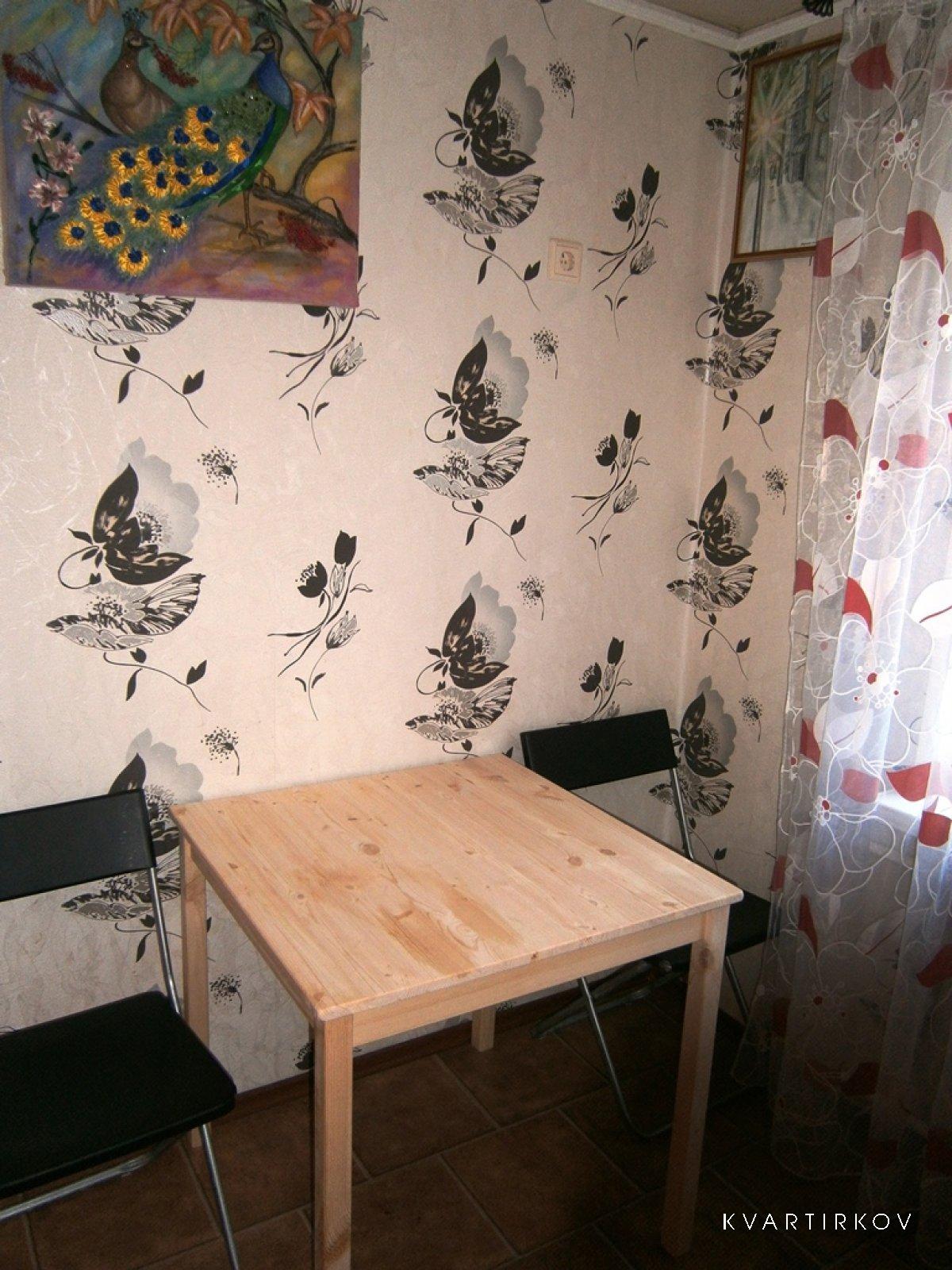 1-room apartment of 31m ² on the 4th floor of 5-storey brick house corner sofa, chair bed, slide, cloakroom, kitchen. set, dining table, chairs, journalist. table. gas stove, water heater, gas water heater, intercom, microwave oven, iron and ironing board, hair dryer, dishes and accessories, TV: Broadcast TV, bedding, cleaning the apartment.