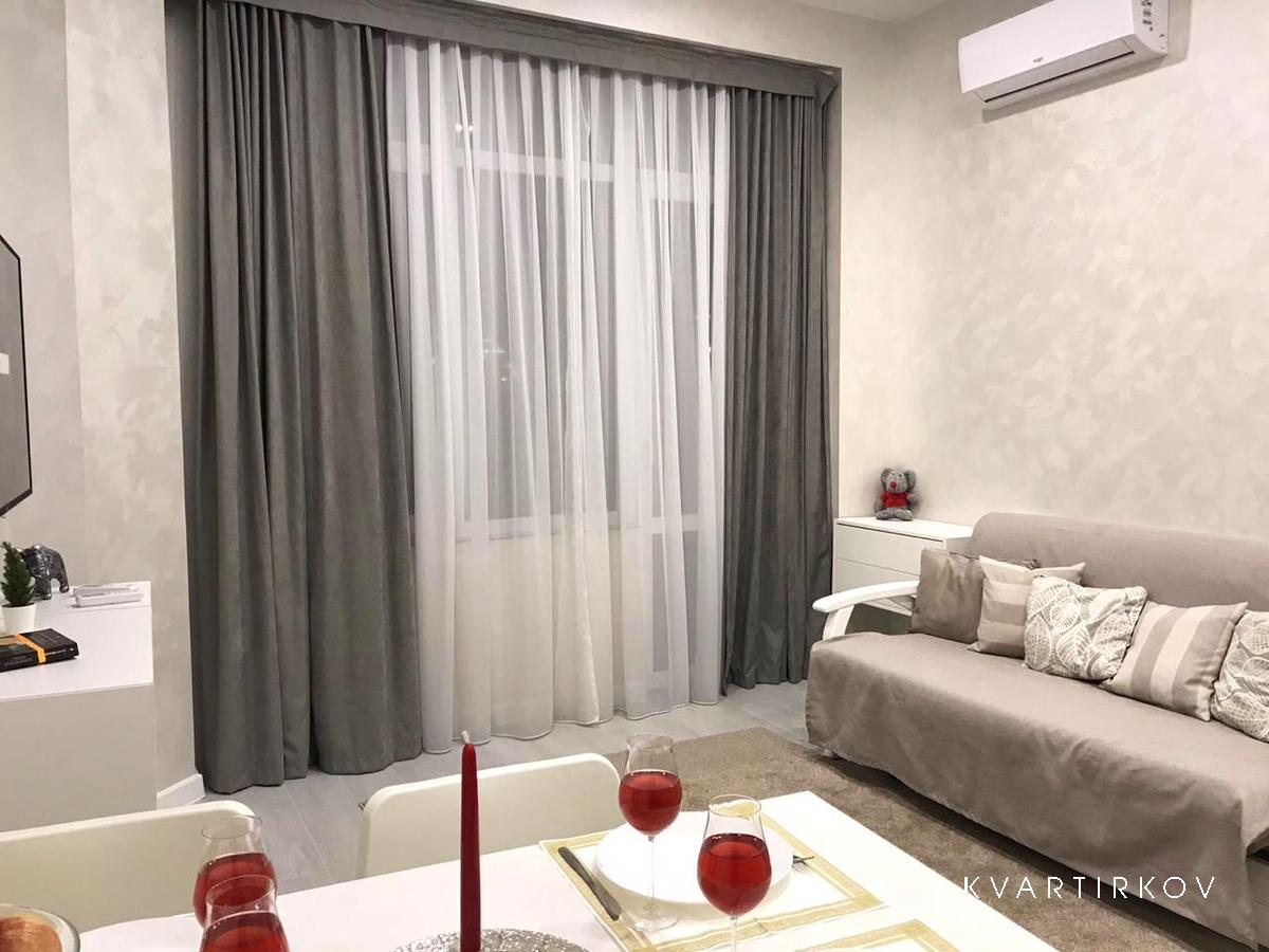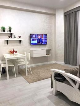 Walking distance to: 24-hour shop, 24-hour pharmacy, cafes, restaurants , Market Orange (lots of fruits and vegetables), equipped beach. The apartment has a designer renovation using classic light colors. Everything is thought out to the smallest detail. The apartment has a kitchen-living room area and a separate bedroom, if you tell more about each room, the bedroom has a double bed with an orthopedic mattress, a spacious mirrored wardrobe, bedside tables, additional lighting by the bed (for those who like to read), air conditioning, TV, blackout curtains (allow you to hide from the scorching sunlight). In the kitchen-living room there is a kitchen area, there are all the accessories for cooking (pots, pans, grater, colander) and eating (pie plates, soup plates, cups, saucers, cutlery), there is a microwave, an electric kettle, also in the kitchen –The guest is a double sofa bed, TV, air conditioning. Another big plus in the apartment is a fairly spacious balcony with sea views, with two comfortable chairs and a table. There are ironing facilities, clothes hanger, clothes brush. Each of the guests is provided with a set of 3 towels, clean ironed linens; Disposable: shampoo, shower gel, soap.