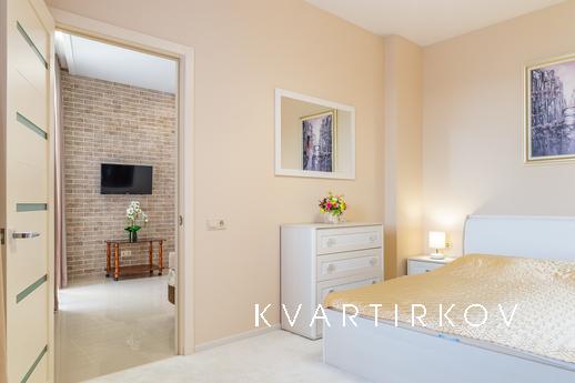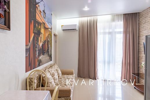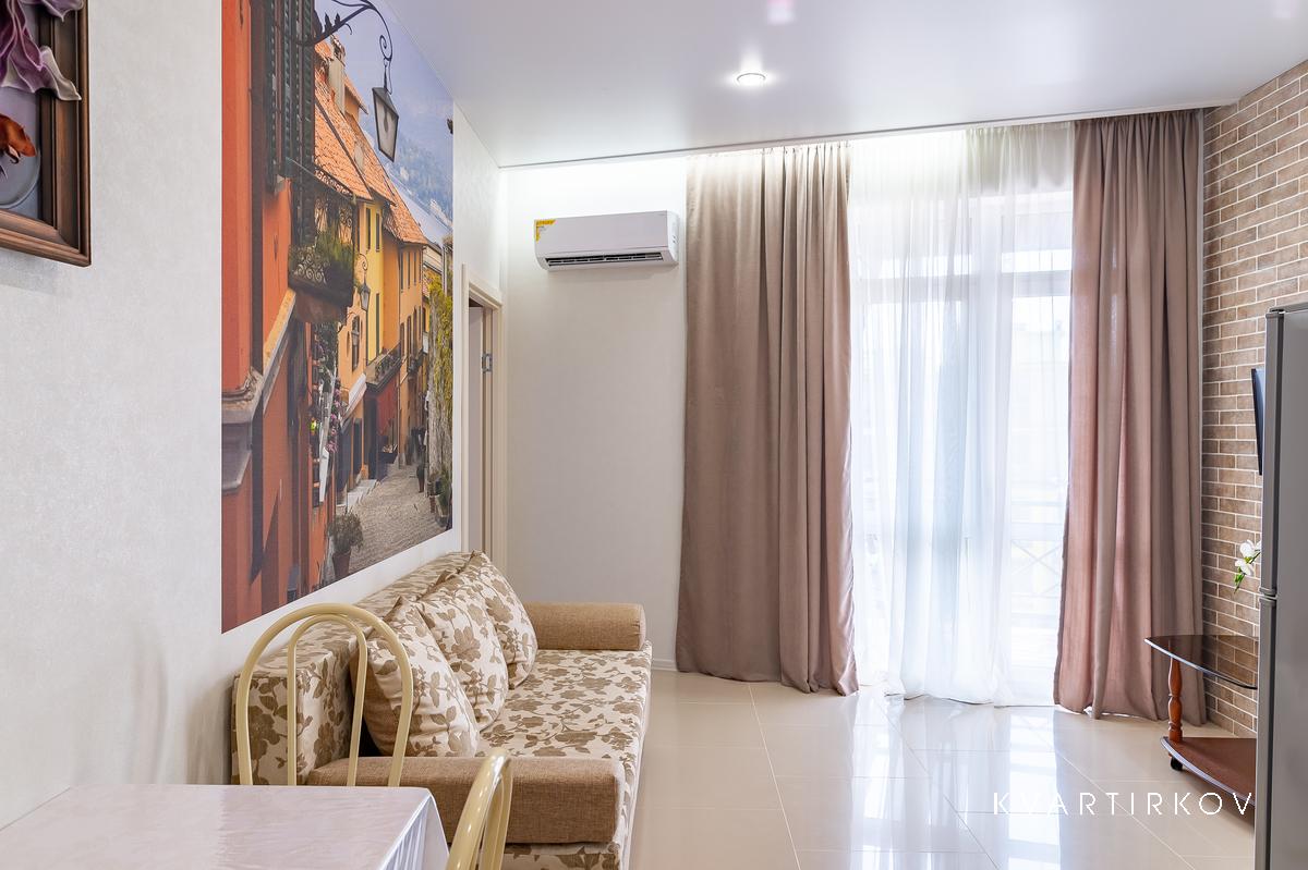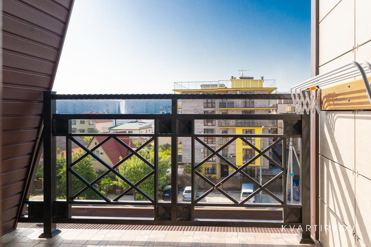 В квартиру приятно возвращаться и отдыхать в новой комфортной кровати, а ковролин в спальне создает особую уютную атмосферу. Теплыми вечерами приятно посидеть на прорном балконе, также на балконе установлена сушка для мокрых вещей – очень удобно, если вы приехали отдыхать на море, да и после стирки не захламляете пространство квартиры.