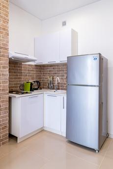Квартира оборудована кухней, которая совмещена с гостиной, отдельная спальня.