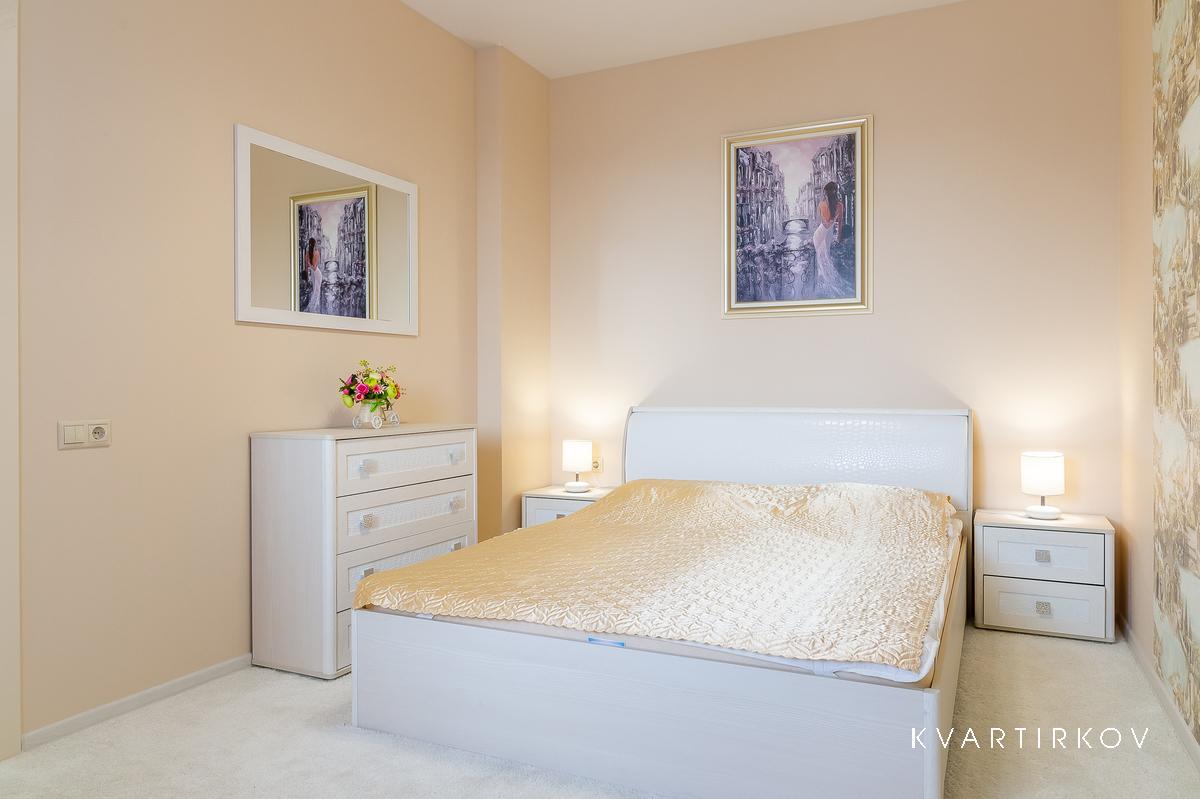 В квартире одна двуспальная кровать в спальне и диван-кровать полуторка в гостиной. В прихожей большой шкаф-купе. В спальне есть комод и прикроватные тумбочки. Вполне комфортно разместиться в квартире трем взрослым. Возможно хместное размещение.