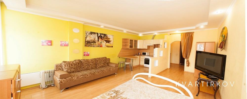 Cable TV and unlimited Wi-Fi to help you while away the evening. Very convenient option for 4 people. Cleaning apartment and change of bed linen, towels field of each arrival and on request. On weekends or holidays, as in long-term lease, the number of guests, price of an apartment varies.