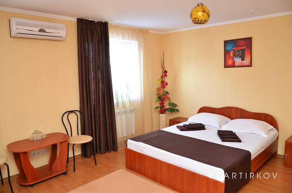 В номере для вас: качественная мебель, телевизор + спутниковое ТВ, холодильник, современная сплит-система, электрический чайник. Санузел оснащен душевой кабиной и банными принадлежностями.