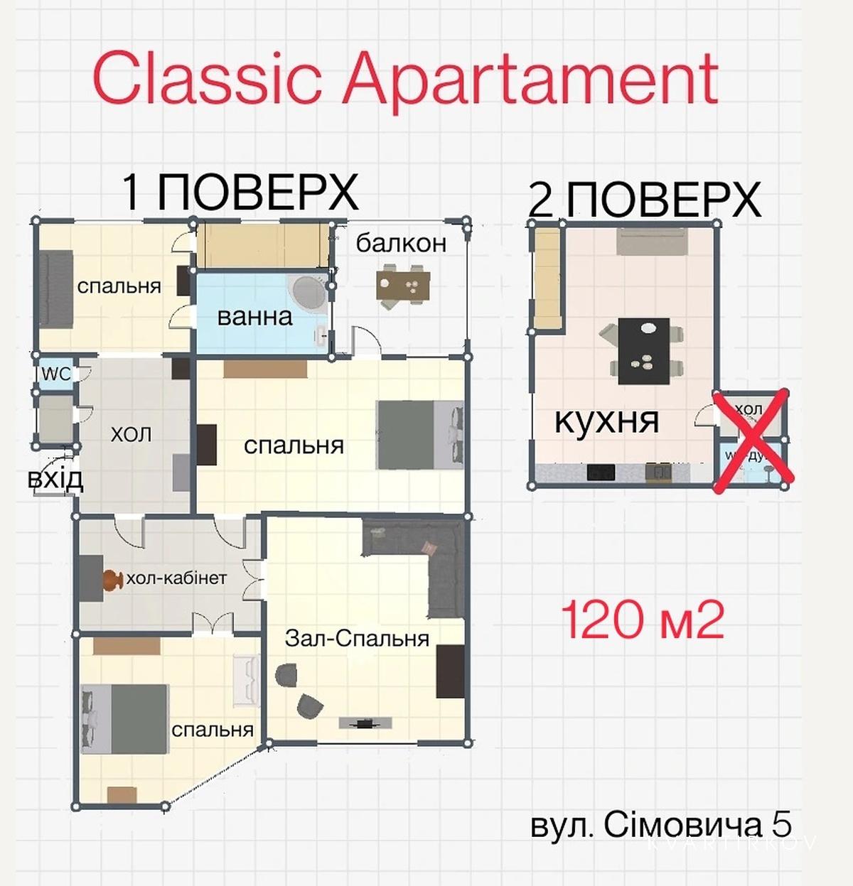 4-х комнатная квартира в двух уровнях общей площадью 130 м2.