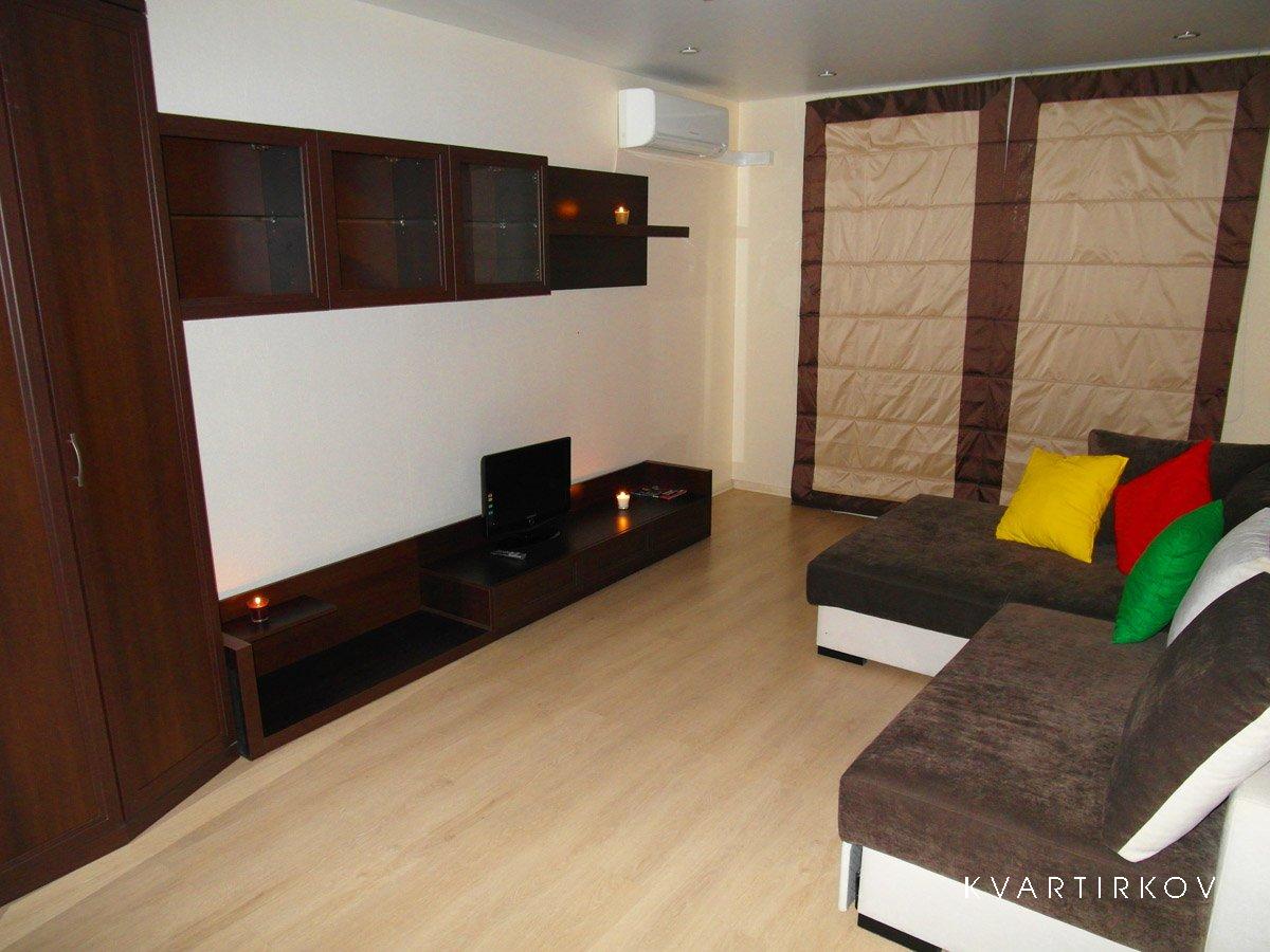 Однокомнатная квартира посуточно Люкс класса площадью 50 кв. м. вмещает от 2 до 4 человек с отличным евроремонтом, с набором всей бытовой техники от электрочайника до кондиционера. ЖК телевизор с 70 каналами кабельного телевидения и беспроводной широкополосный Интернет позволят Вам всегда быть в гуще событий.