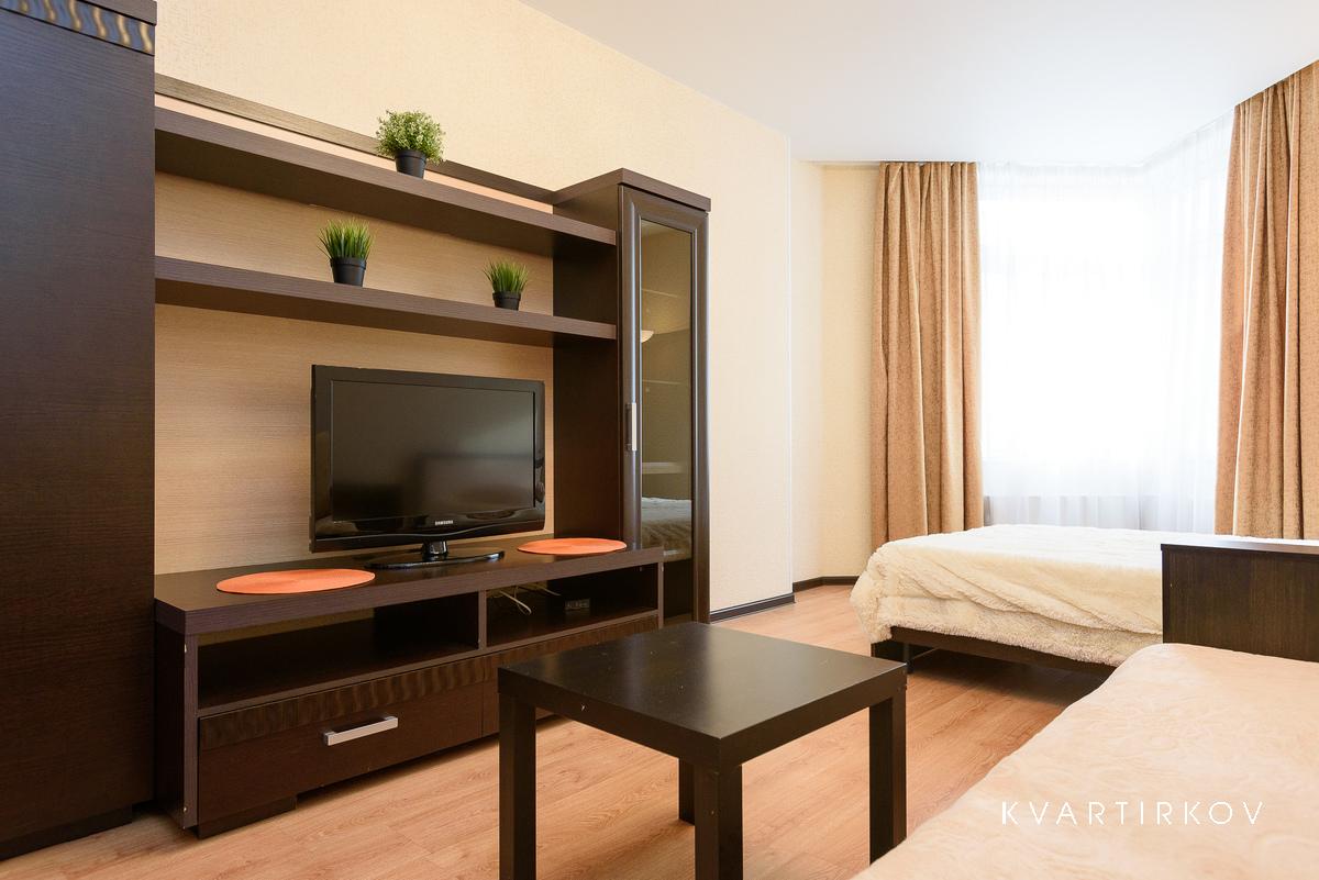 В квартире сделан современный качественный евроремонт в уютных бежевых тонах. Есть все, что нужно для комфортного проживания: посуда, бокалы, постельное белье, полотенца, утюг, фен, гладильная доска, стиральная машина-автомат, телевизор ЖК и всегда и хорошо работающий безлимитный Wi-Fi.