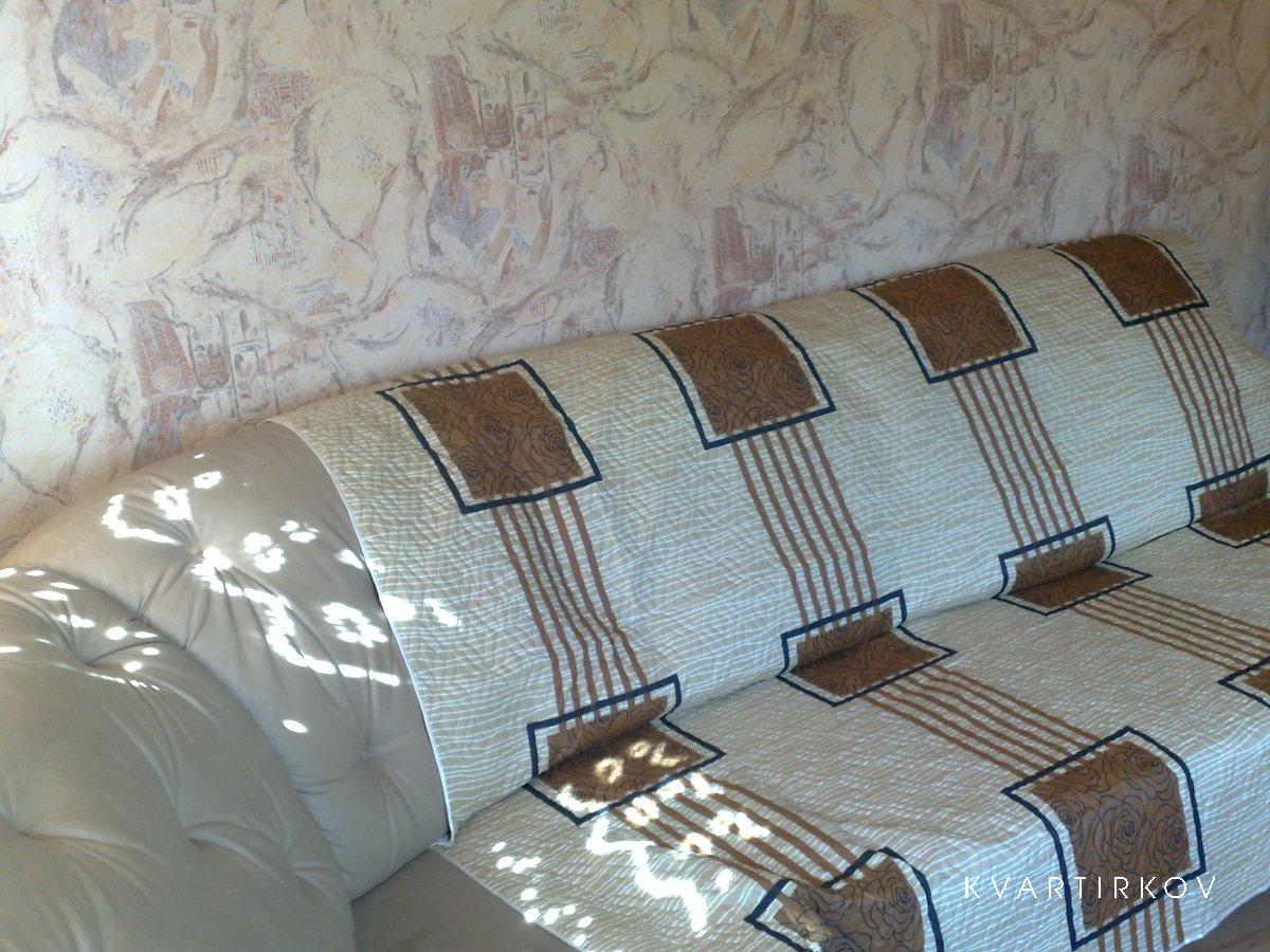 Мебель: двуспальный раздвижной диван, шкаф-купе с большим зеркалом, раскладная кровать IKEA, тумба с ящичками под бытовую технику, компьютерный стол с полочками, кухонный стол, мягкие табуреты, кухонный гарнитур, необходимая посуда.