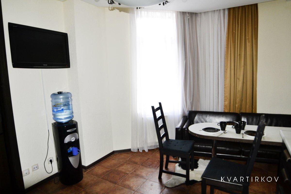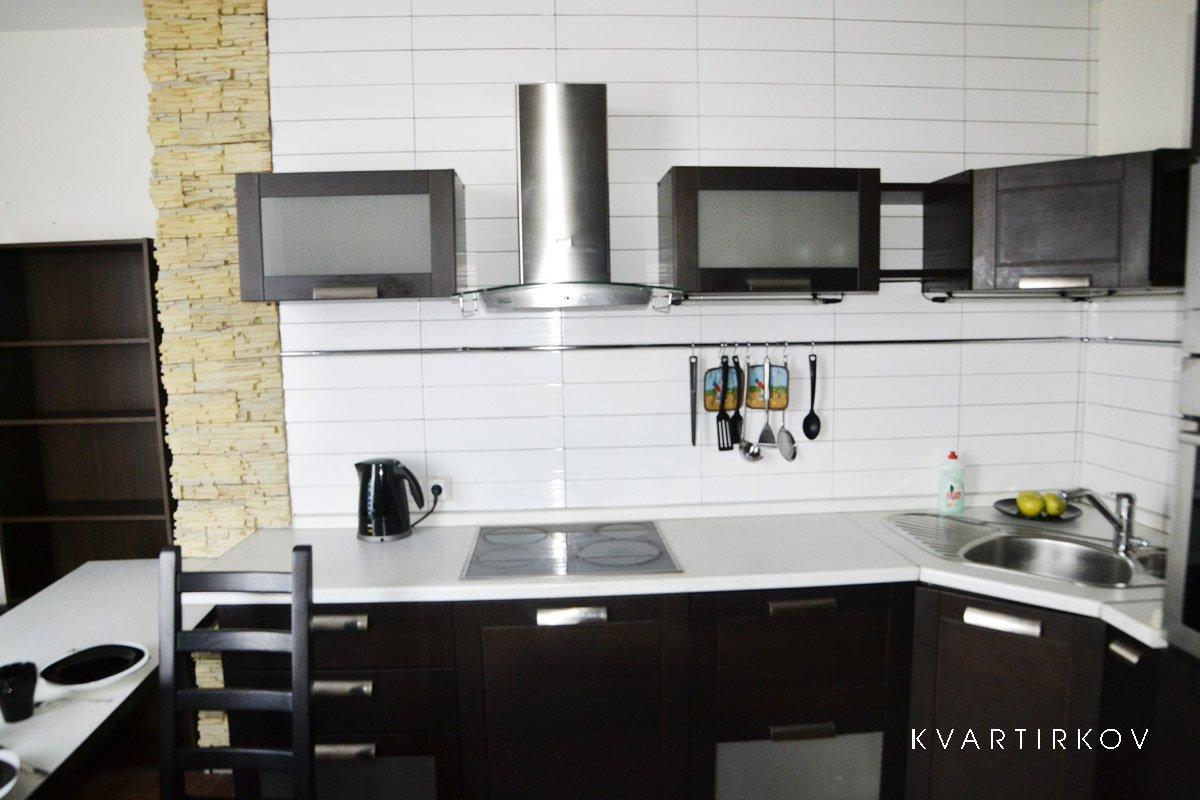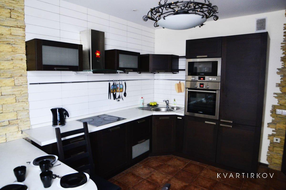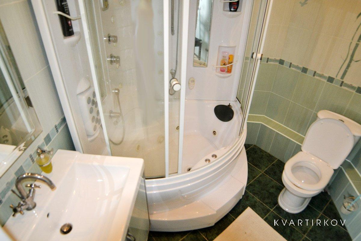 Холодильник с морозильной камерой, Большой кухонный гарнитур, Электрическая плита с духовкой, Микроволновая печь, Электрический чайник, Большой ЖК телевизор ( 35 каналов ТВ) . В квартире так же есть Большая душевая кабина с радио и музыкой, Джакузи на двоих человек и многое другое.