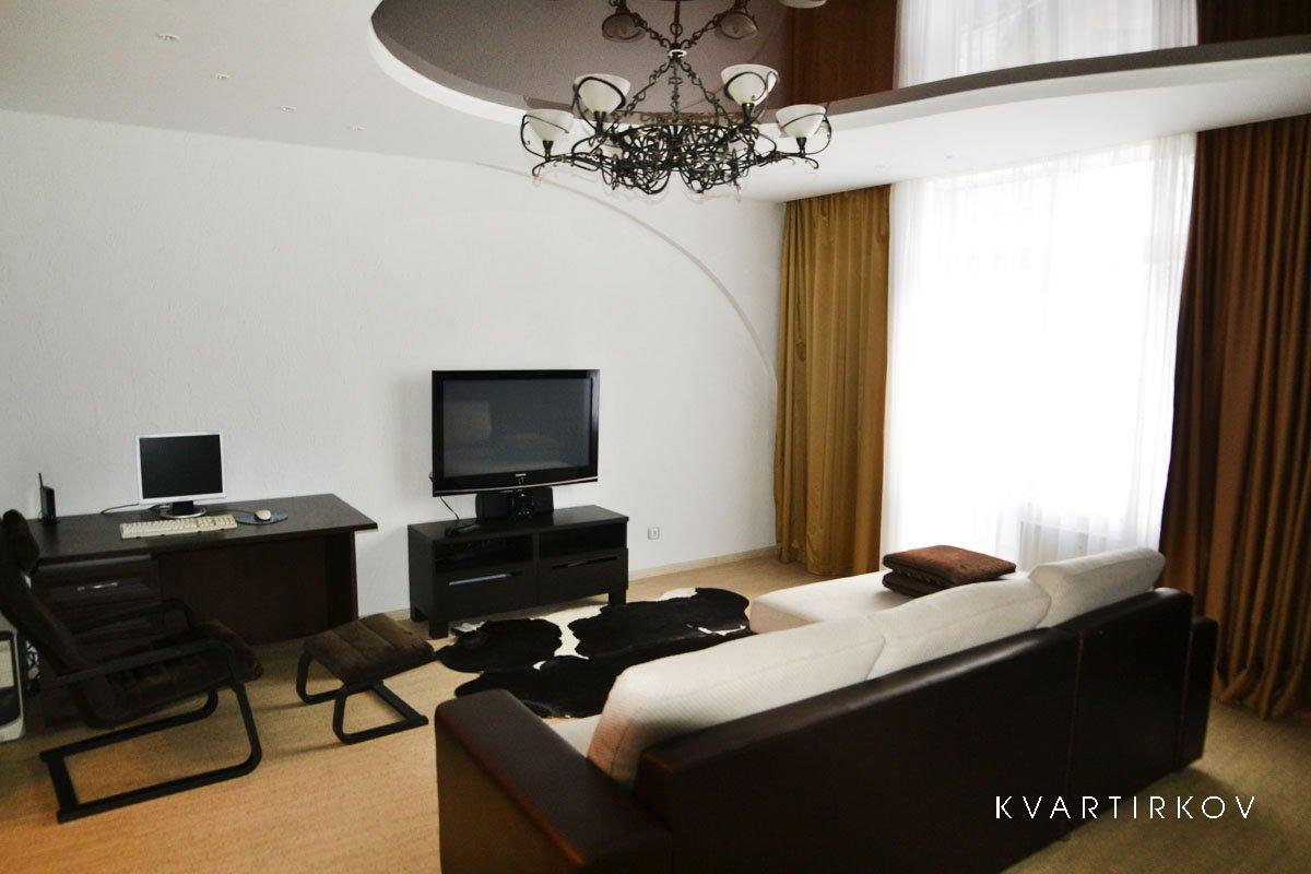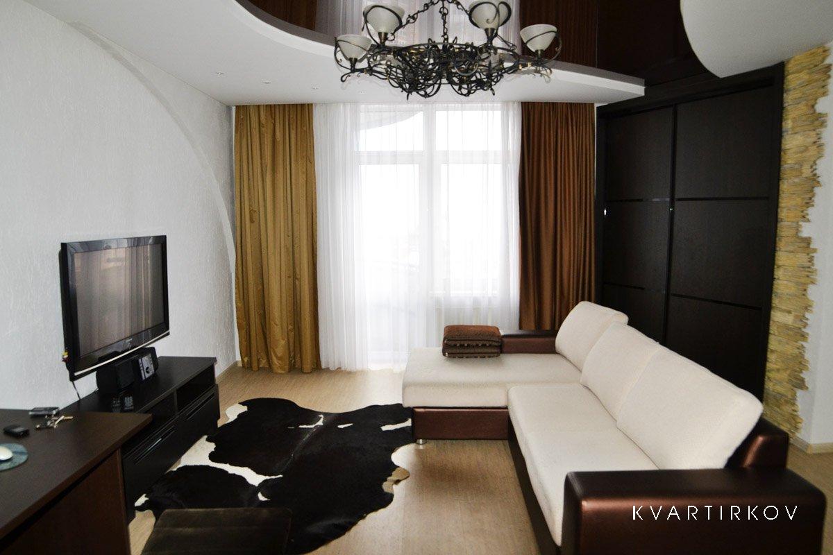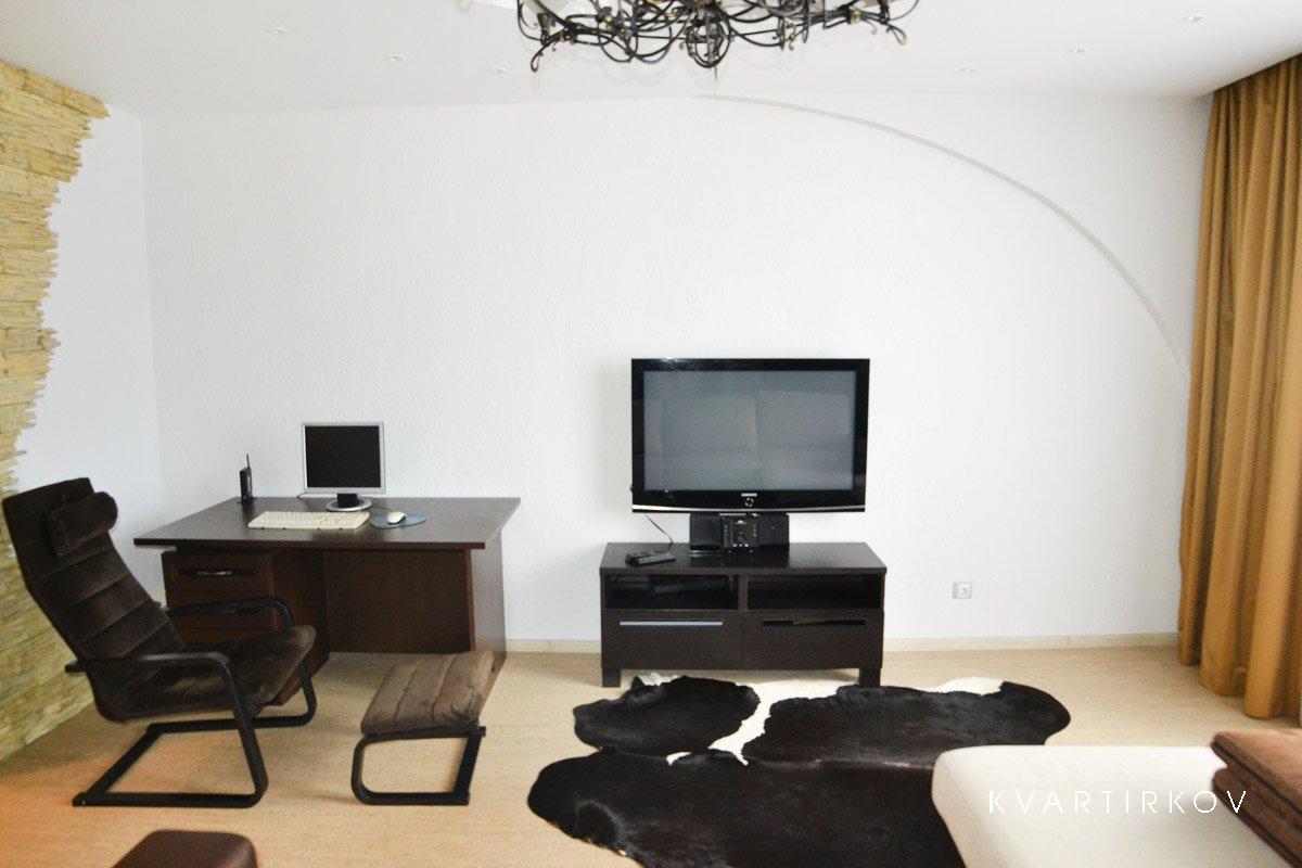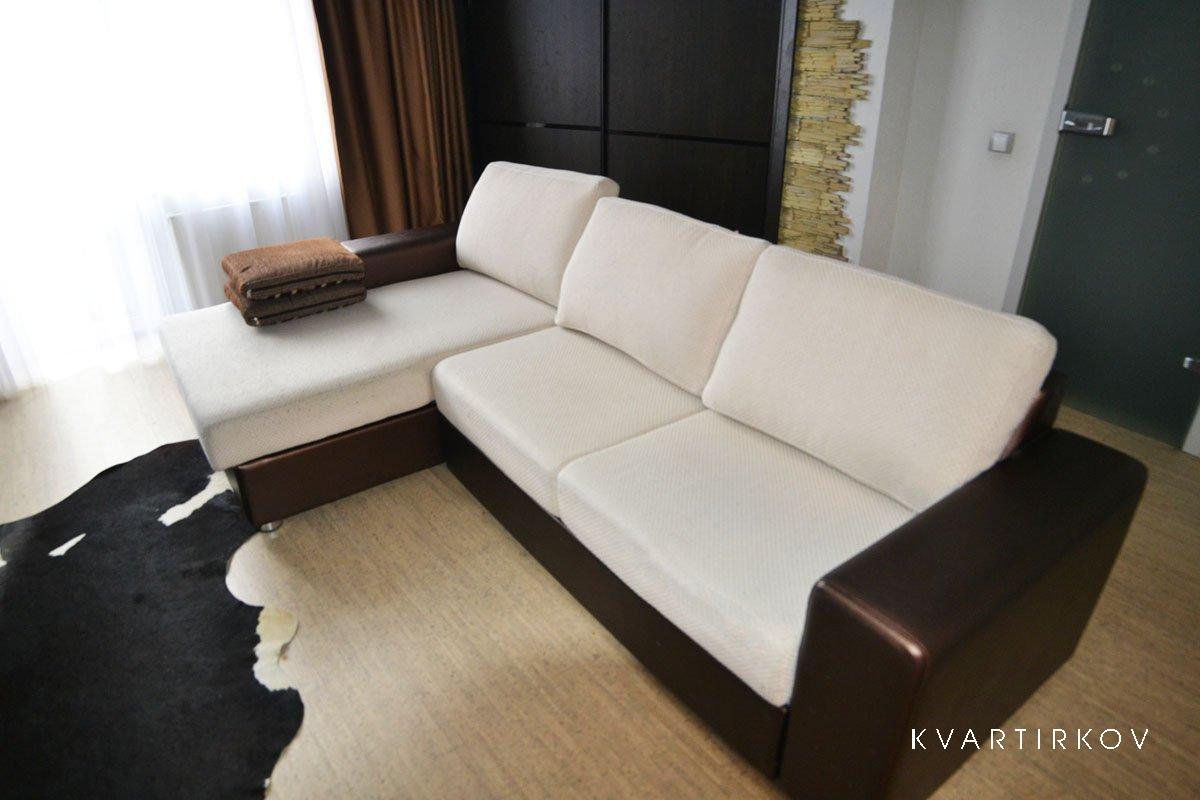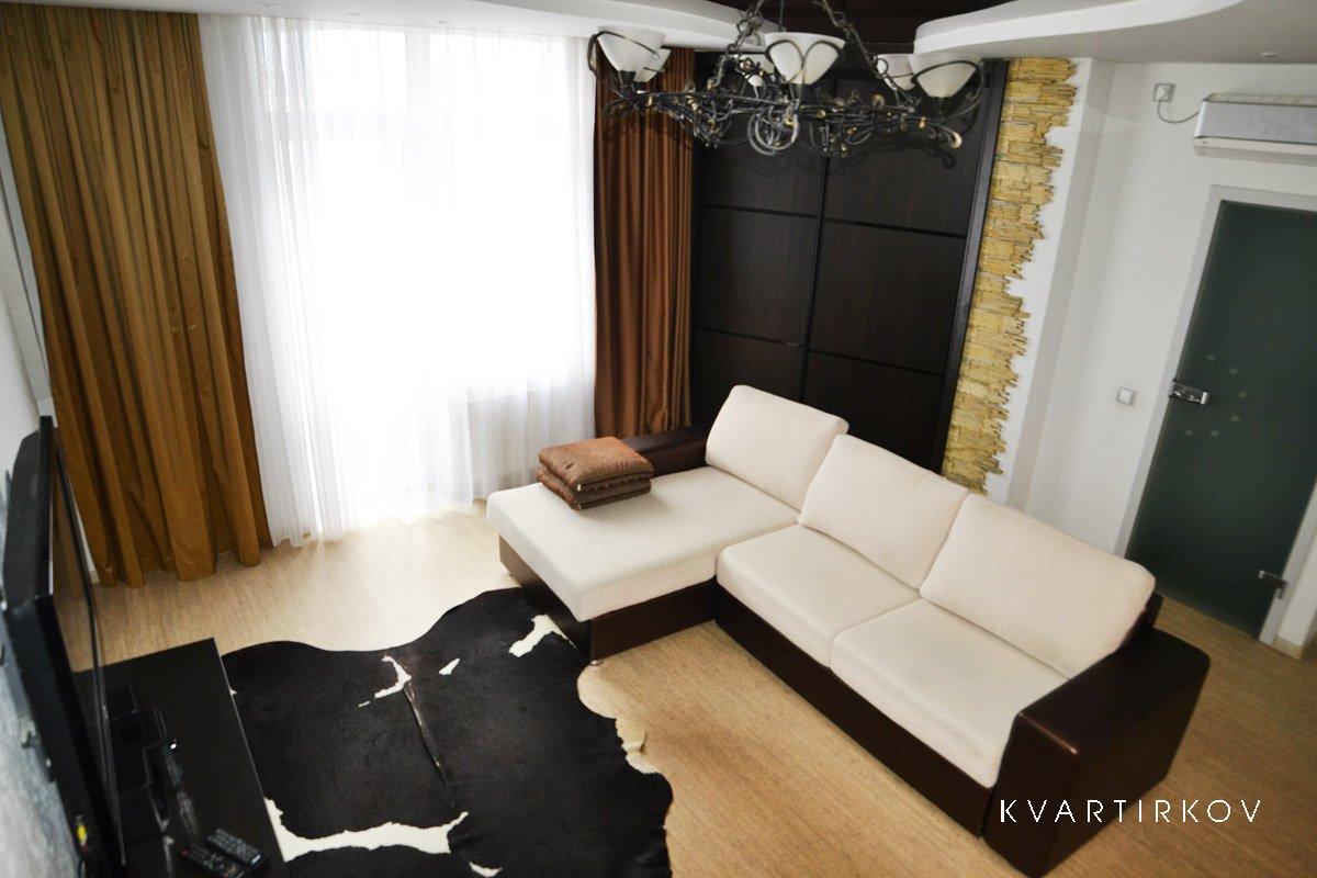 Удобный большой мягкий диван в гостиной, огромный ЖК телевизор, кондиционер, игровой компьютер, Интернет Wi-Fi.