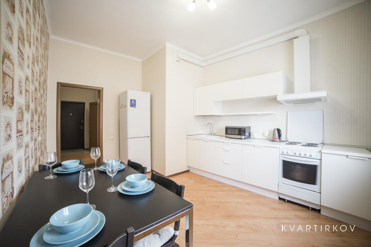 До центра всего лишь 7 минут езды. Все крупные развлекательные и торговые комплексы расположены недалеко. ( Аквапарк, ТатнефтьАрена, КазаньАрена, Дворец водных видов спорта, Дворец Единоборств, ТРК Корстон, ТРК Парк Хаус, ТЦ Бэхетле, Киномакс прямо напротив). Квартира в новом доме, с новой мебелью, ухоженный двор и подъезд с консьержем. Очень просторная (100 кв. м. ) , уютная, а главное чистая и аккуратная квартира со всеми удобствами. В спальне одна двуспальная кровать , шкаф, прикроватный тумбочки. В зале телевизор, два раскладных дивана. Стиральная машина, утюг, электрический чайник, посуда, постельные, туалетные принадлежности - все есть. Панорамный балкон с удивительным видом на набережную , Кремль, Мечеть Кул Шариф, Загс-Чаша и Аквапарк Ривьера.
