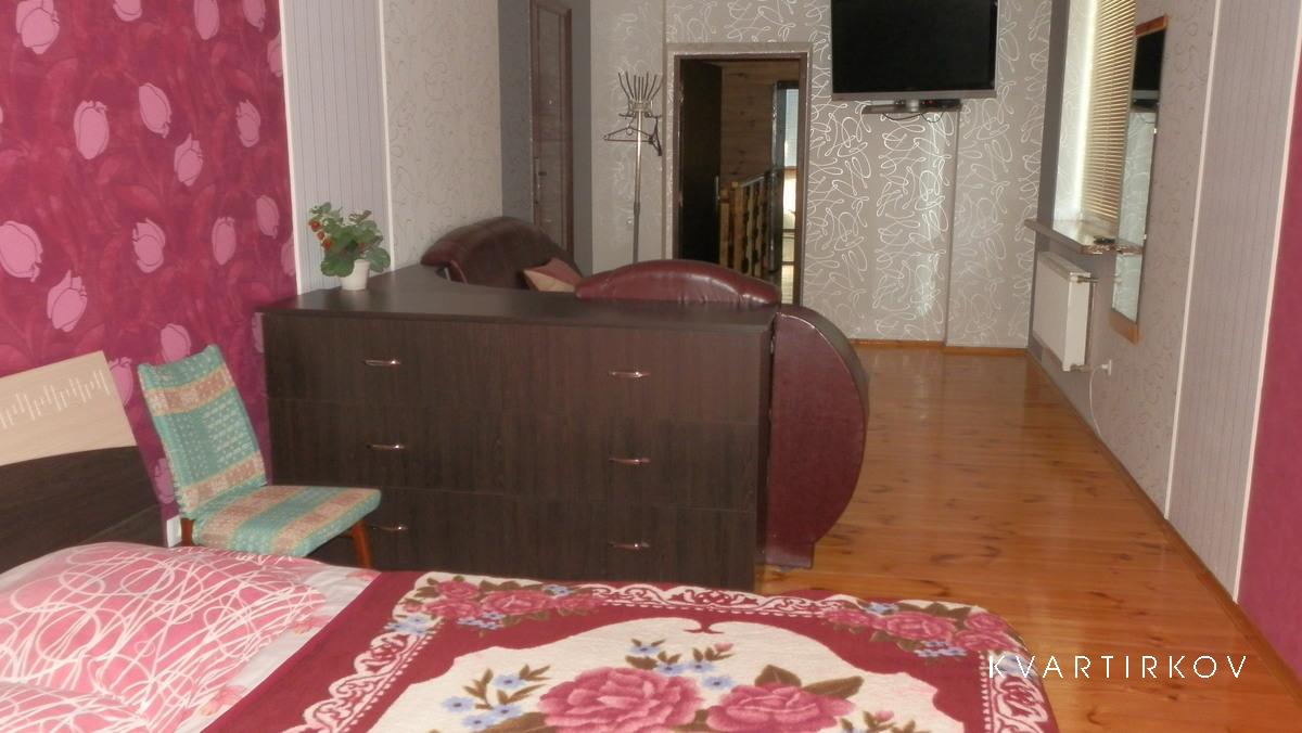 Каждая комната закрывается на ключ и имеет свой изолированный от других комнат вход ,тем самым может использоваться как отдельный номер.В доме спальных комнаты,ловая,комната отдыха,кухня, санузла, душа.Проживание у нас может стать отличной альтернативой 1,2,3-комнатным квартирам,в зависимости от выбранной Вами площади.Во дворе имеются специально оборудованные места для курения.Мы хотим ,чтоб не зависимо от того с чем связан Ваш визит-с работой или отдыхом-чтоб Вам было уютно и комфортно. Чита и порядок гарантированы.Можно разместить от 1 до 15 человек,что очень удобно для большой и или компании.При желании можно воспользоваться беседкой с мангалом или попариться в сауне за дополнительную плату.Выдадим чеки.Мы не сотрудничаем с агенствами. Цена зависит от количества человек,минимальная имость проживания от 400 грн до 2000 грн. тел., ,