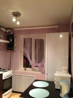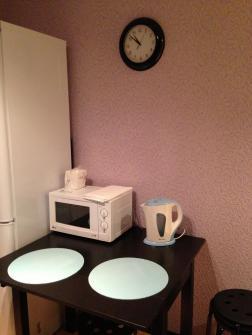 В квартире находиться два спальных места - это двуспальная кровать, и мягкий диван. На кухне имеется все необходимое для приготовления пищи: электрический чайник, микроволновая печь,холодильник.