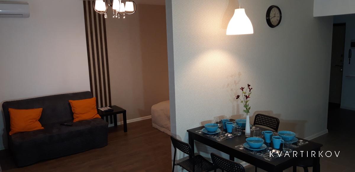 К услугам гостей двуспальная кровать и удобный диван, телевизор с плоским экраном и бесплатный Wi-Fi, сплит-система. На кухне имеется холодильник, микроволновка, ,варочная плита, духовой шкаф, бойлер, электрочайник и кухонные принадлежности, стиральная машина, утюг с гладильной доской, сушилка для белья. Все фото настоящие, квартира в реальности выглядит именно так, как на картинке – не агенство.