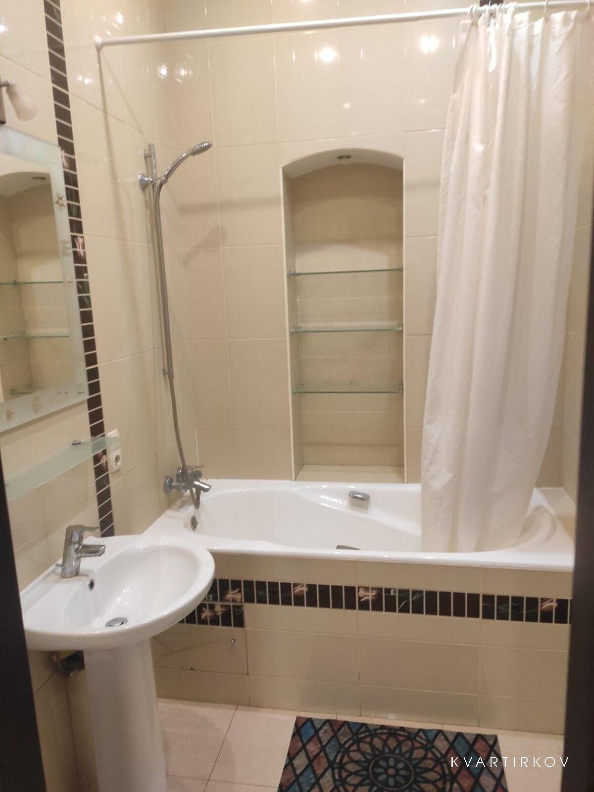 Є окрема вбиральня. Ванна кімната світла, всередині розміщені: умивальник, підвісне дзеркало з поличкою та пральна машина, ванна з поличками для ваших дрібниць. Завжди в наявності чисті рушники та свіжа постільна білизна.