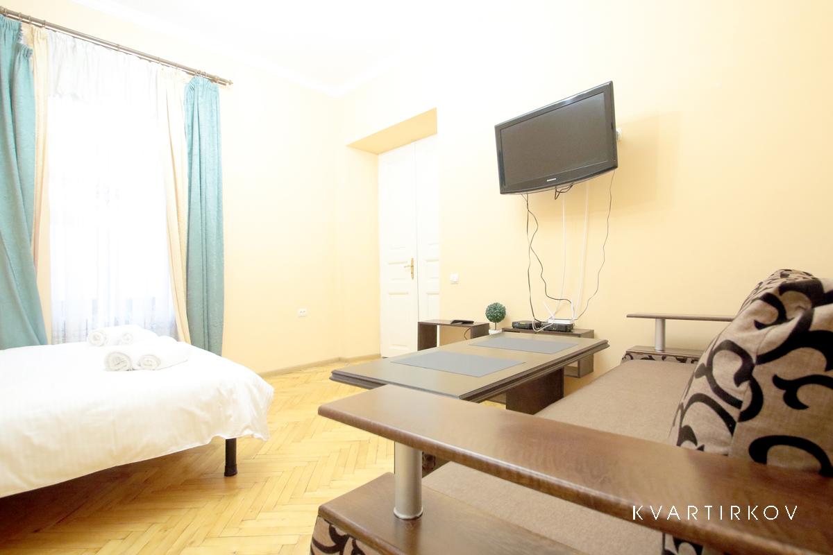 Апартаменти з 1-ю кімнатою знаходяться на вул.Куліша 45, на 2/3 поверсі.