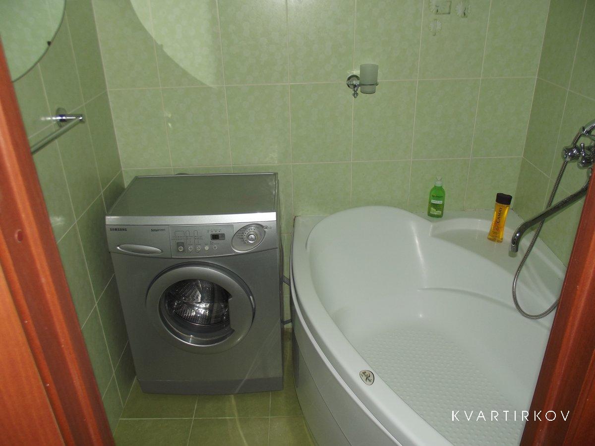 , холодильник 185см., СВЧ печь, газовая плита, эл. чайник, стиральная машинка, утюг, фен. В квартире четыре спальных места. Есть интернет и кабельное ТВ.