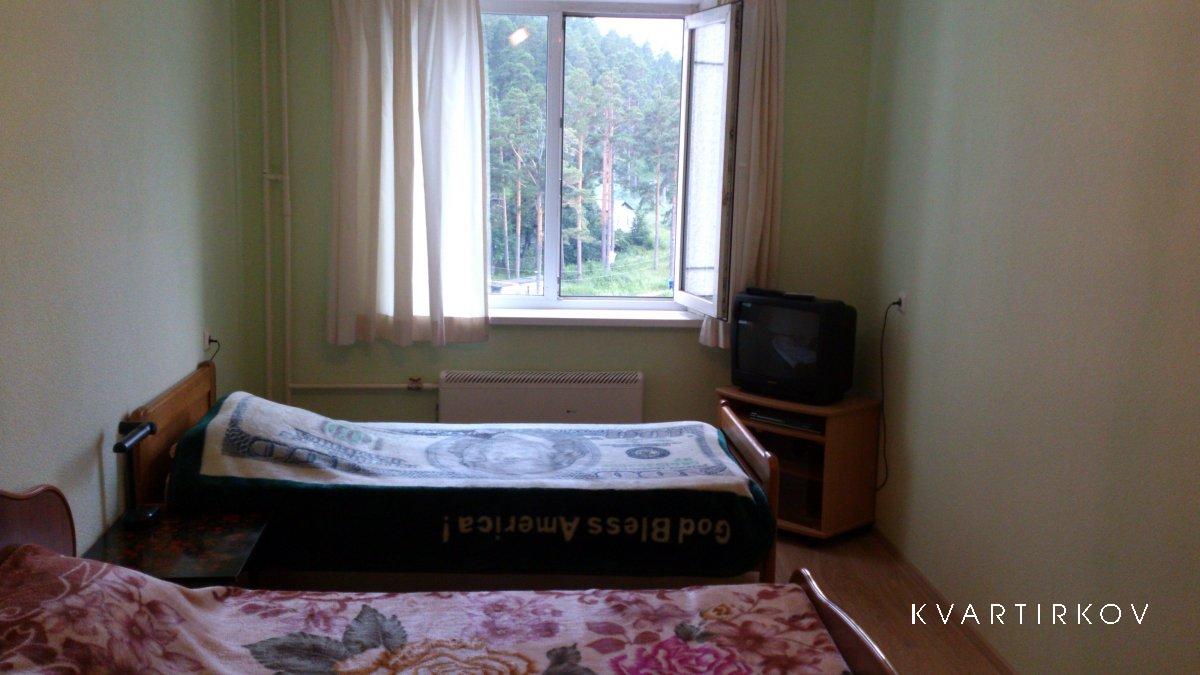 Квартира на 6 человек (2+1,2+1) с кухней (плита, микроволновка, холодильник, кух. Зона) в каждой комнате ТВ+ДВД, ванна и туалет раздельно.