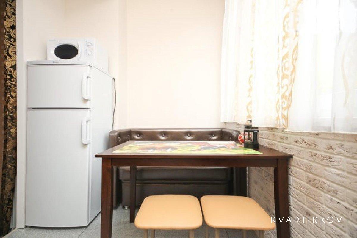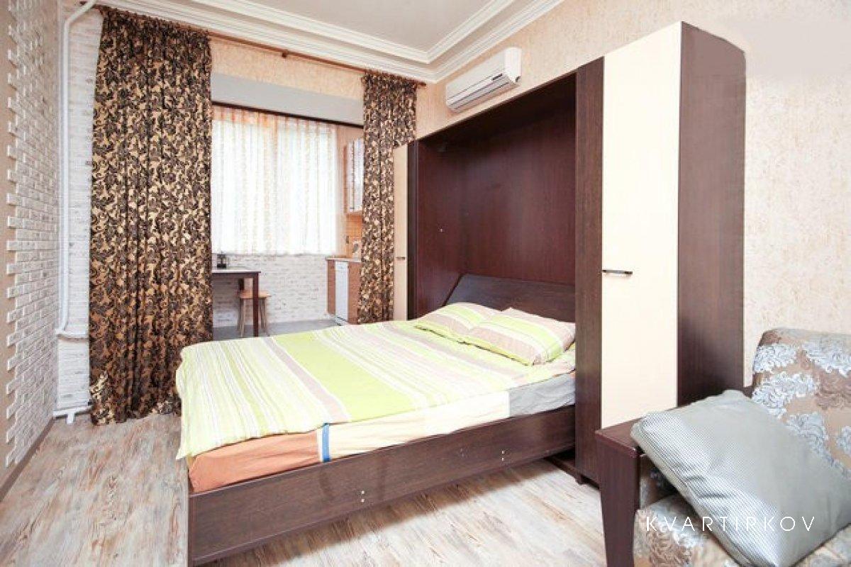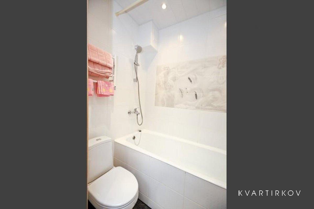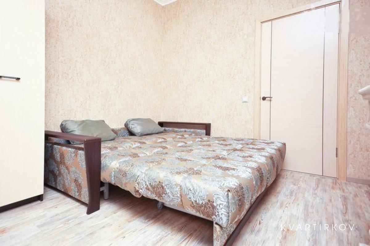 Квартира предусмотрена для размещения 2+2. К услугам постояльцев – удобные кровать и диван (160х200 и 190х200 соответственно). Уборка и смена белья производится раз в 5 дней.