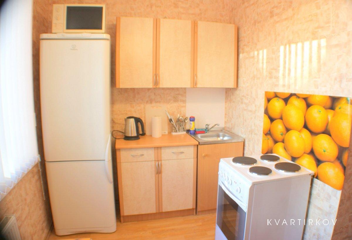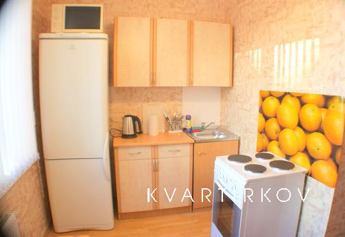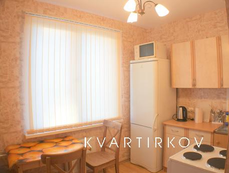 Квартира оборудована всем необходимым для посуточной аренды. В квартире находится двуспальная кровать с ортопедическим матрасом 160*200 и прикроватные тумбы. Гостиная комната меблирована двумя диванами-книжками, комодом и платяным шкафом. В квартире также есть ЖК-телевизор, dvd-проигрыватель, в квартире проведен интернет wi-fi. На кухне электрическая плита, холодильник, СВЧ-печь, электрический чайник, вся необходимая посуда. В ванной комнате новая современная сантехника, раковина, ванная. Рядом с домом парковка для автомобилей.