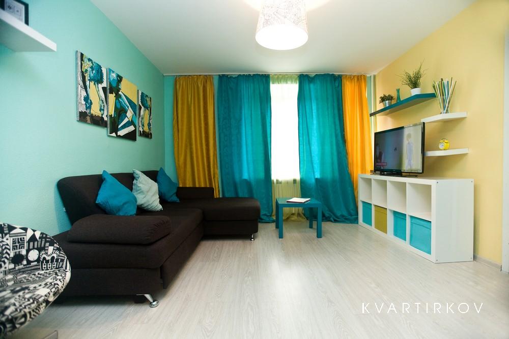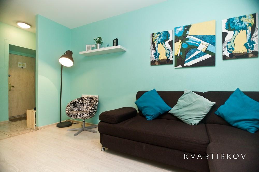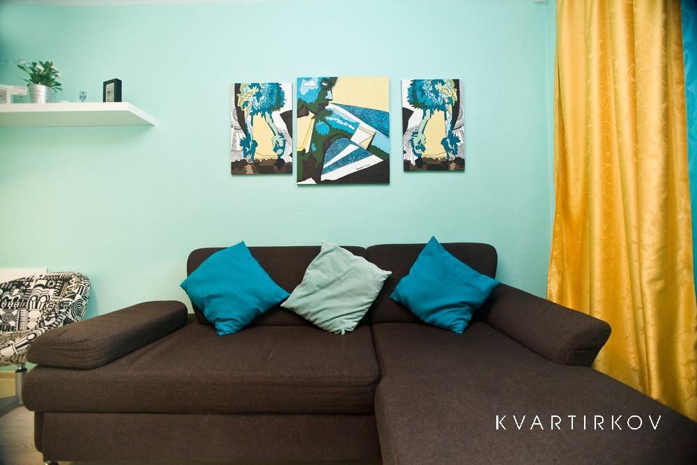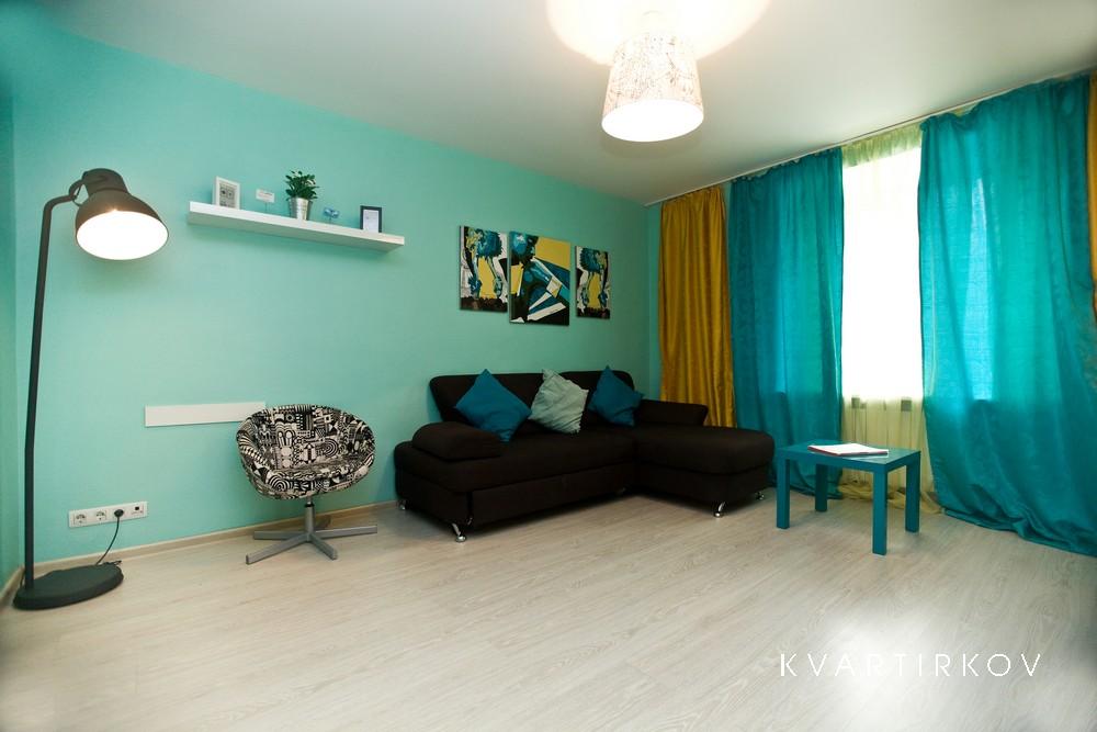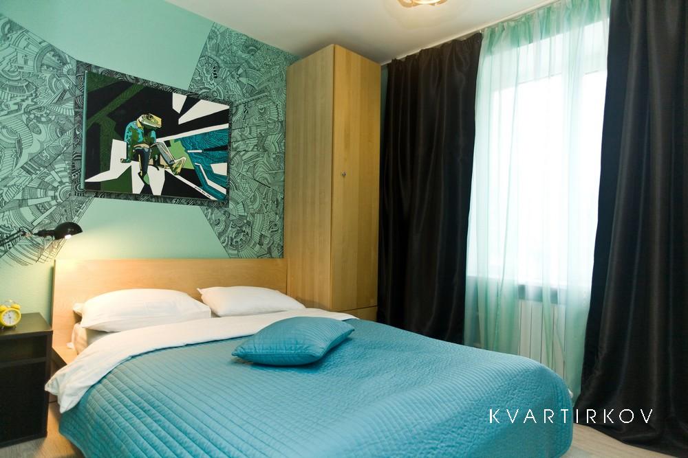 Квартира предназначена для проживания 1-2 человек при размещении на отдельных спальных местах или 1-5 человек при совместном размещении на двуспальных местах. В квартире: двуспальная кровать в одной спальне, раскладной двуспальный диван в гостиной. раскладной пуф. Возможна организация дополнительного спального места - раскладной кровати с матрасом на 1 человека