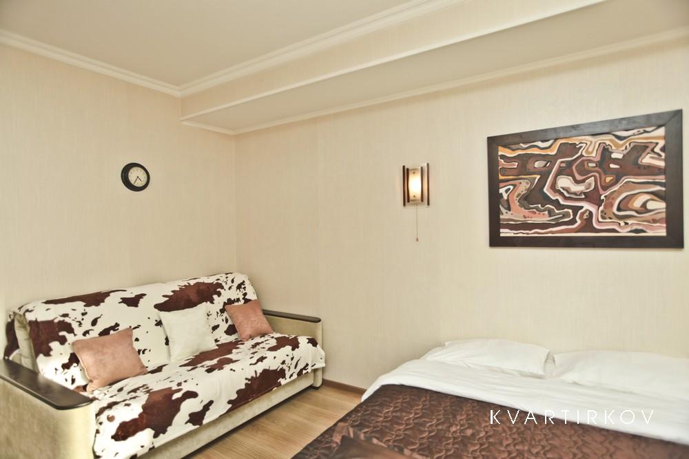 Квартира предназначена для проживания 1-2 человек при размещении на отдельных спальных местах или 1-4 человек при совместном размещении на двуспальных местах. В квартире: двуспальная кровать и двуспальный диван. Возможна организация дополнительного спального места - раскладной кровати с матрасом на 1 человека.