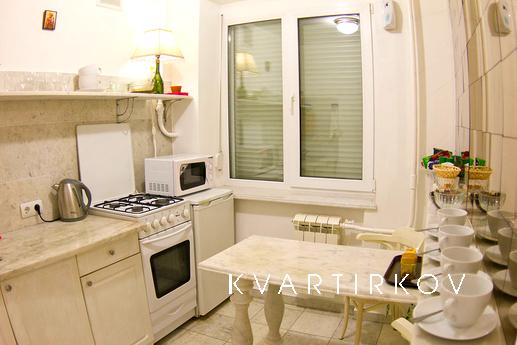 Три видеокамеры обеспечивают дополнительную безопасность по периметру: 1-я на входном общем подъезде (Полиция), 2-я - на общей коридорной двери (видео-домофон), 3-я: на входной двери в квартиру (видео-домофон + чип-кодовый электронный замок). К услугам клиента: Отапливаемые полы, стиральная машина, микроволновая печь, кондиционер, ЖК-телевизор 32 дюйма (цифровое ТВ+ каналами) и безлимитный -. Мебель в классическом стиле. Все это создает уют и комфорт для вас. Это лучшее предложение в этом районе за эти деньги, если не так - то вернем вам ваши деньги. Квартира посуточно - незаменимая альтернатива гостиницам, для людей, ценящих комфорт и домашний уют. Забронировать номер Вы сможете круглосуточно, без выходных.