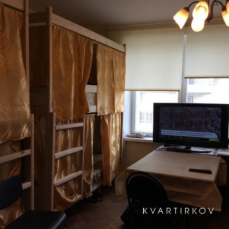 Предлагаем койко-места в хорошей просторной квартире. У нас 2 комнаты на 6 (с балконом) и 8 мест (с телевизором). В комнатах новые двухъярусные деревянные кровати со шторками и ортопедическими матрасами. Постельное белье выдается бесплатно. Есть все необходимое: холодильник, микроволновая печь, электрочайник, электрическая плита, духовка.