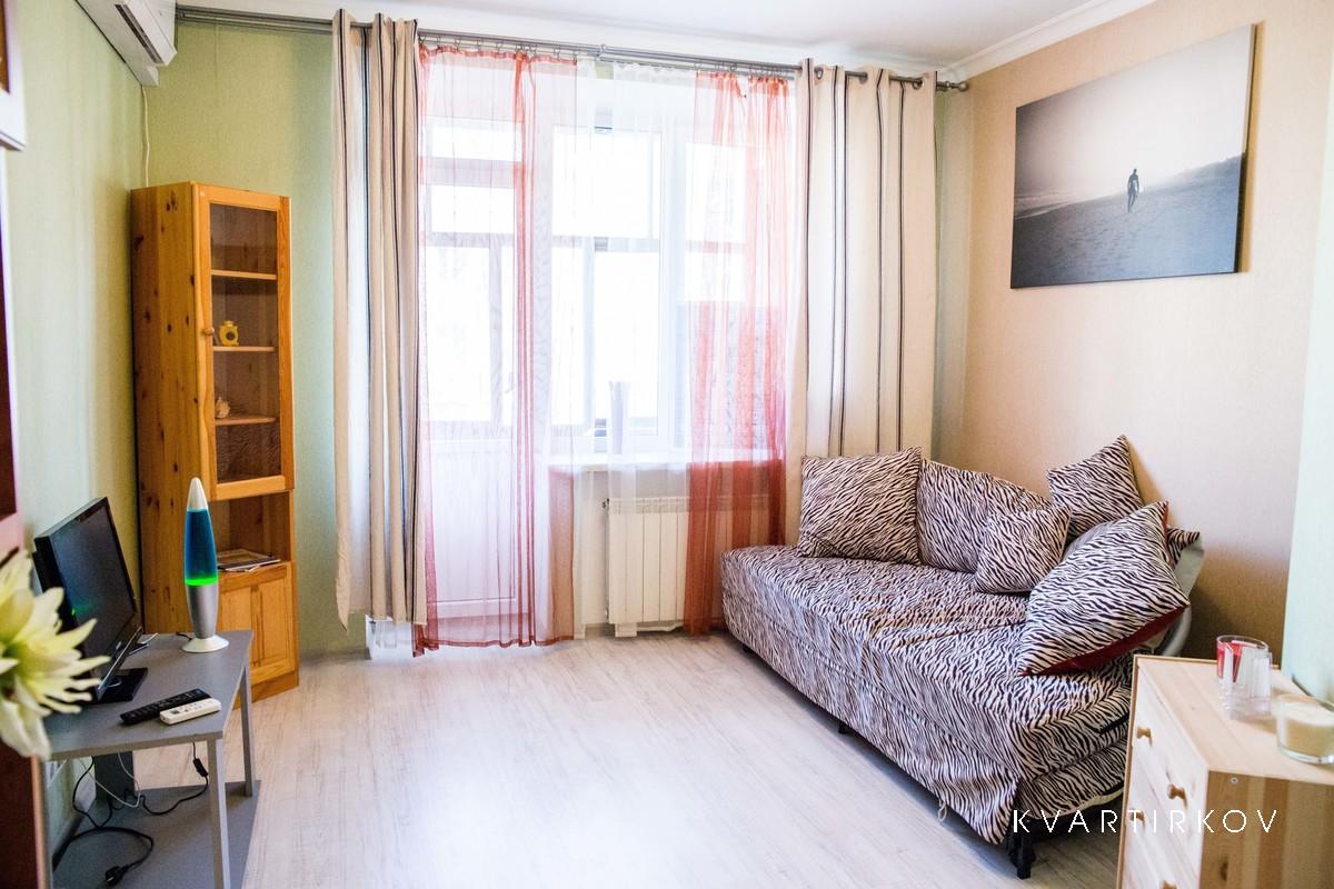 Спальная комната с удобным широким двуспальным диваном, кондиционером и письменным столом. Гостиная с комфортным диваном, балконом, кондиционером, телевизором, современной мебелью. При необходимости, можно использовать одну дополнительную комфортабельную раскладную кровать с ламелями и матрацем. Великолепная кухня в романтичном молодежном стиле с барной стойкой наполнена всем необходимым кухонным оборудованием, включая незабываемый оранжевый холодильник. Ванная комната оснащена всей необходимой сантехникой и стиральной машиной. Дом стоит на тихой улочке и в квартире абсолютно тихо. Минималистичный дизайнерский подход в оформлении интерьера создает радостное и романтичное настроение. Доступно гостям К услугам гостей полный набор удобств: оснащена всей бытовой техникой, кондиционерами, посудой, столовыми и душевыми принадлежностями. Общение с гостями Мы с радостью ждем Вас в гости и всегда готовы Вам помочь. Район Апартаменты расположены в сердце старой Москвы, наполненном огромным количеством достопримечательностей, в 20-ти минутах ходьбы от Красной площади. Рядом садовое и бульварное кольца, Тверская улица. Ближайшее метро Новослободская находится в 1-ой минуте пешего шага. Район наполнен современными кинотеатрами, торговыми центрами, например “Дружба”, в котором имеется большой продуктовый супермаркет “Перекресток”. В самом доме расположено несколько кафе, магазинов суши и баров. Нужно сказать, что в округе огромное количество заведений где можно вкусно поесть (например, недорогое кафе “Оранжерея”) и потанцевать. Любители спорта и прогулок по достоинству оценят расположенные неподалеку парки и пруды. Если Вы хотите совместить активное участие в жизни столицы, проживание в центральном районе и комфортный домашний отдых, то данные апартаменты станут для Вас лучшим выбором. Транспорт Вы можете добраться до квартиры, используя личный автомобиль, ближайшее метро Новослободская или Менделеевская или такси. Добираться на автомобиле очень удобно. Недалеко расположено садовое кольцо, с которого возможен удобный заезд. Мы так же готовы оказать Вам услугу встречи из аэропорта или вокзала с табличкой. Другие важные подробности Мы будем рады встретить наших гостей и всегда готовы помочь дельным советом. Вы можете, также, воспользоваться услугой ТАКСИ ИЗ/В АЭРОПОРТ. $40 комфорт, $75 бизнес. Мы предоставляем услуги безопасного официального такси, чтобы Вы быстро и с комфортом добрались из аэропорта до квартиры. По желанию мы можем встретить Вас в аэропорту с табличкой. По запросу мы можем предоставить Вам такси бизнес-класса (Мерседес). Мы рады всем позитивным жильцам! Правила дома Пожалуйста, соблюдайте правила нашего дома: -Не шумите после 22:00! Это самое важное правило, не соблюдение которого, к сожалению, приводит к Вашему немедленному выселению; -Квартира не предназначена для курящих; -Снимайте обувь перед тем, как пройти в апартаменты; -Выбрасывайте мусор только за пределами здания в специально отведённые контейнеры; -Пожалуйста, выключайте свет и кондиционеры, а также, закрывайте окна перед уходом; -Вы можете использовать все кухонное оборудование. Спасибо за понимание! И чувствуйте себя как дома! :)
