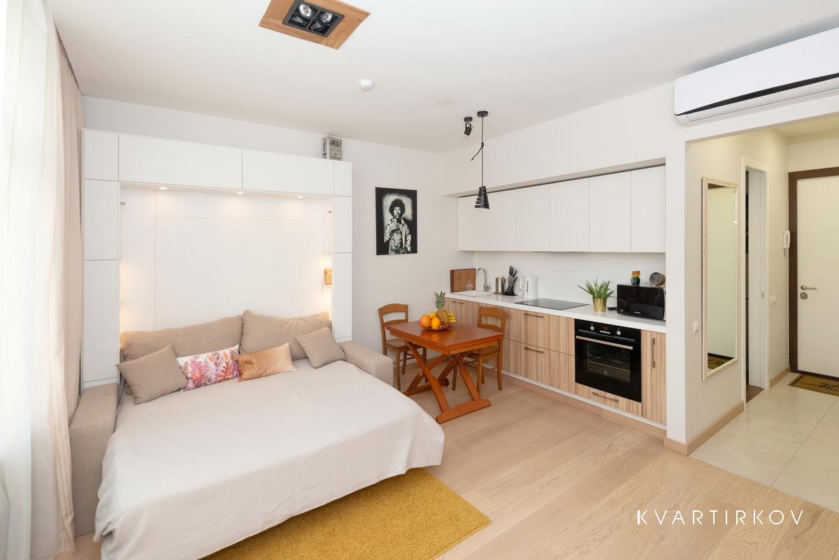 Уютная студия с ремонтом в скандинавском стиле находится в новом доме бизнес-класса - ЖК "Онли", проект- продолжение Большого Сити. У пространства идеальная планировка, идеальный ремонт, качественная встроенная мебель и техника, премиальный высокий этаж, окна выходят в красивый внутренний двор без машин.