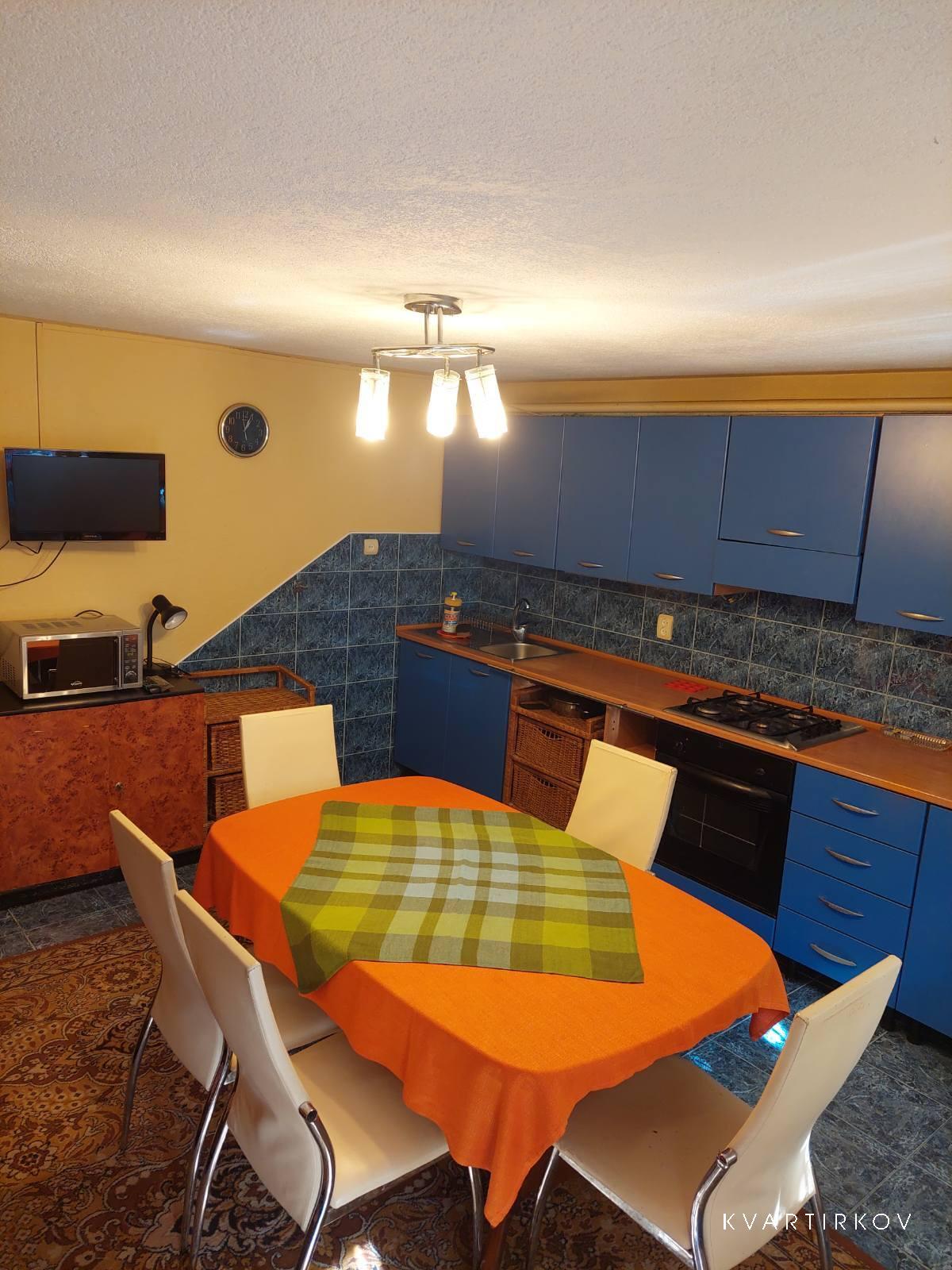 Квартира розташована на першому поверсі приватного будинку з окремим входом та великою альтанкою для відпочинку та проведення сніданків,обідів,вечер.Квартира розрахована на проживання до 6 осіб,можливо і більше.В розпорядженні гостей мангал,автостоянка,двір.Квартира має велику кухню,де є газова плита,духовка,мікрохвильова піч,весь необхідний посуд для проживання на будь який термін.