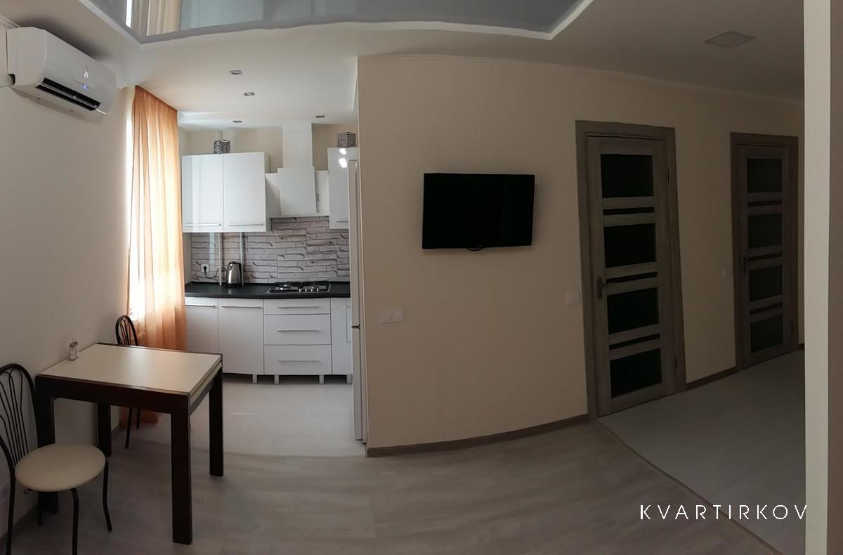 К услугам гостей полностью оборудованная кухня со всей необходимой посудой и обеденной зоной. В квартире бесплатный Wi-Fi, кабельное TV.В квартире есть балкон и гардеробная комната. Для сна и отдыха имеется двуспальная кровать с ортопедическим матрацем и раскладной диван, всего 4 спальных места со всеми необходимыми постельнымы принадлежностями. Для постоянных клиентов существует гибкая система скидок.