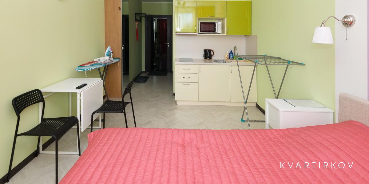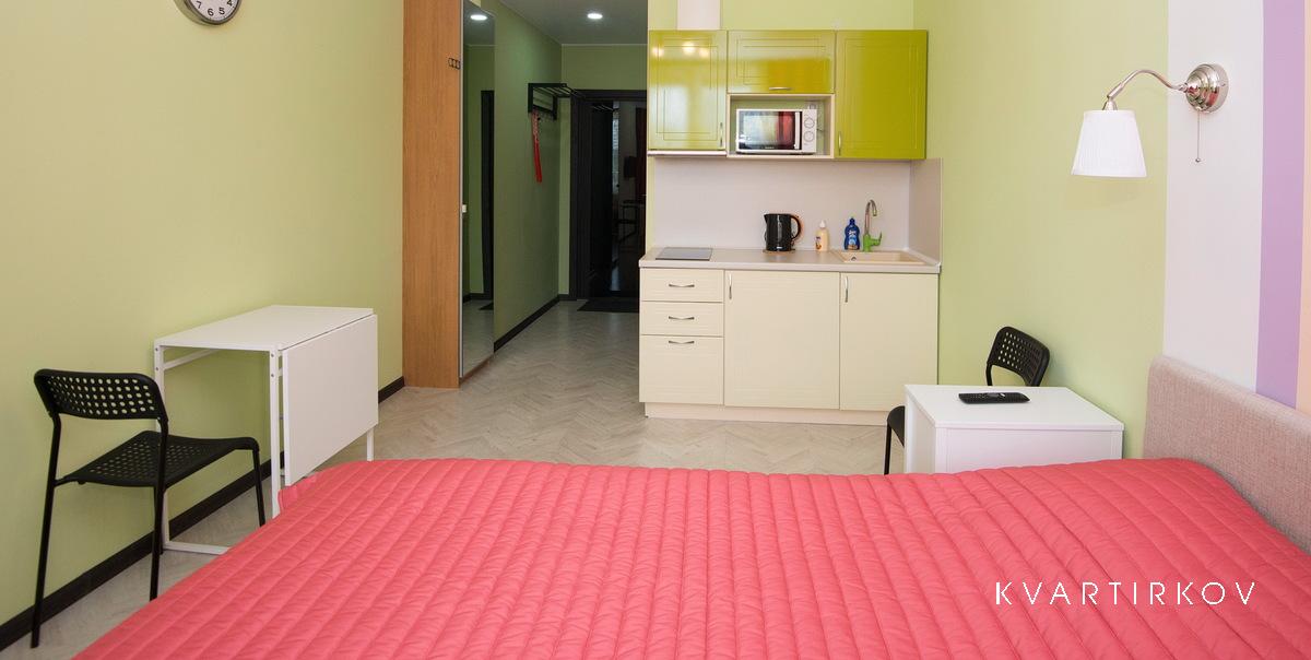 Красивая уютная студия, с кухней, с одной роскошной двуспальной кроватью (160х200).