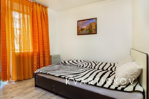 Уютная квартира с евроремонтом. Центр Ростова-на-Дону, окна во двор! Раздельные комнаты. Полностью меблирована, бытовая техника, стиральная машина-автомат, утюг, гладильная доска, фен, большой плазменный ТВ, ДВД проигрыватель. Спальные места - двухспальный диван-кровать и новая двухспальная кровать с ортопедическим матрасом.