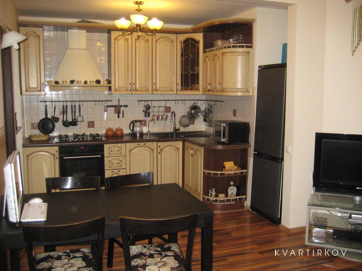 В гостиной: диван-кровать (140х200 в разложенном виде, двуспальный), обеденный стол и 4 стула, барная стойка, холодильник, кухонная мебель, гладильная доска, утюг, электрокерамическая плита с духовкой, стиральная машинка автомат, микроволновая печь, эл.чайник, все необходимые столовые приборы и посуда, сплит-система, пылесос, большой плазменный телевизор, кабельное телевидение триколор, DVD player, караоке, беспроводной интернет.