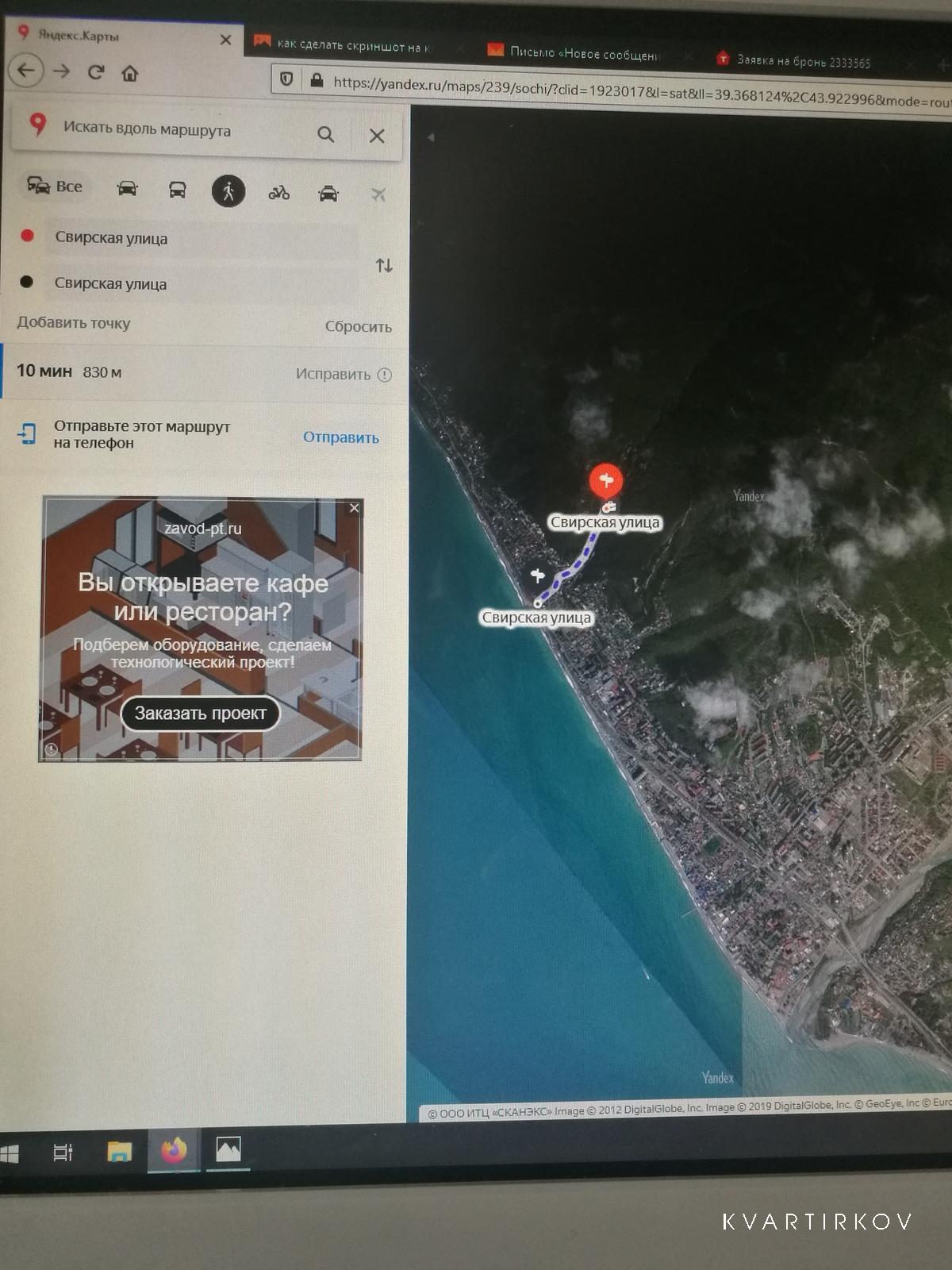 Двухуровневые апартаменты находятся в живописном месте по ул Свирская , 22 в п Лазаревское, его окружают Кавказские горы вдоль гор течет ручей. В ущелье тихо и по вечерам прохладно, по утрам слышно пение птиц. Апартаменты расположены в отдаление от жд и автотрассы и остального жилого массива поселка.