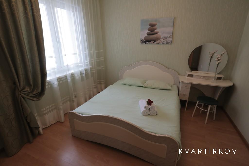 Уютная, теплая, чистая квартира. Фотографии квартиры соответствуют действительности! Квартира оснащена всей необходимой бытовой техникой, имеется необходимая посуда и столовые приборы. 1 плазменный телевизор.