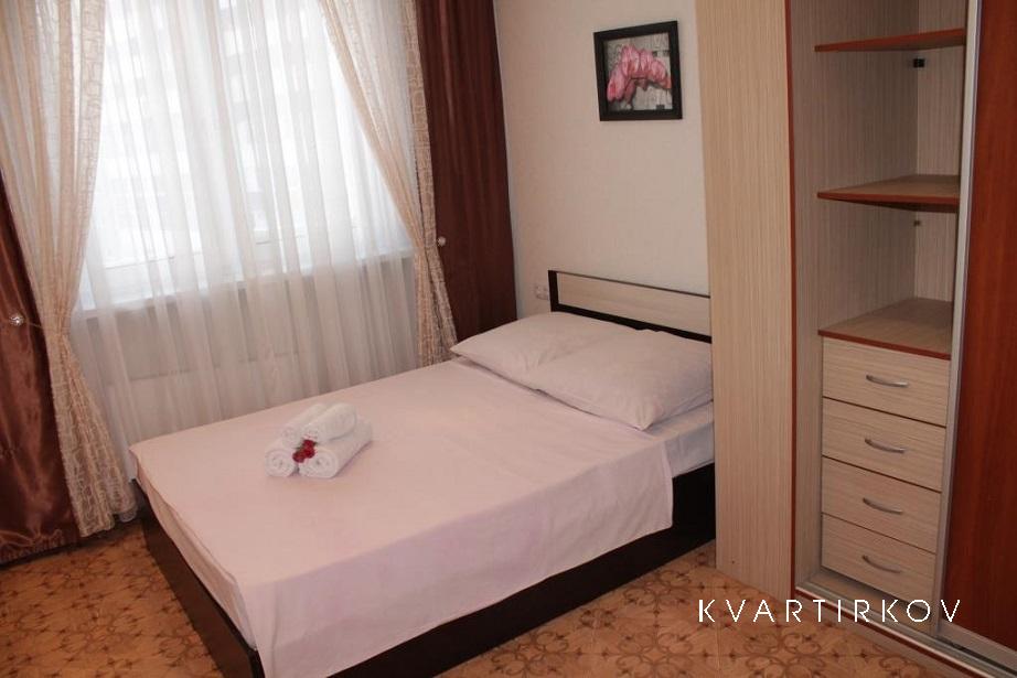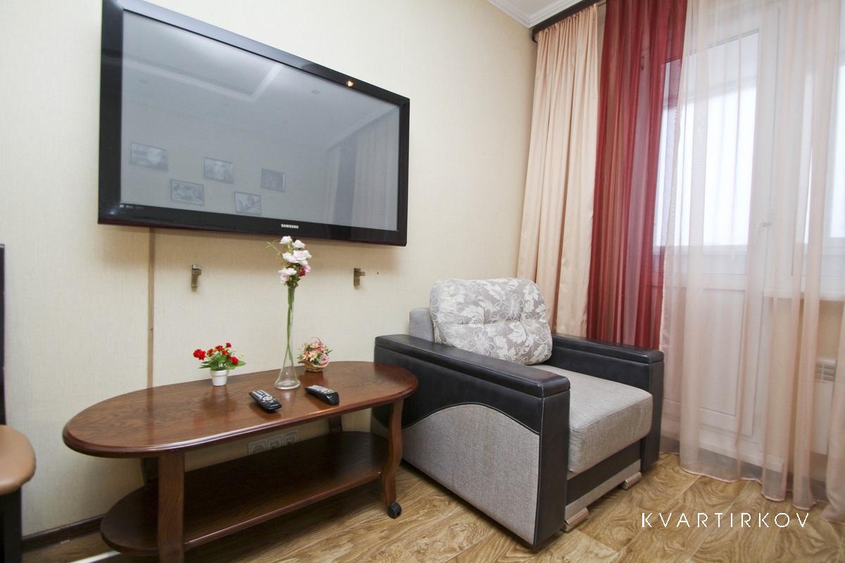 Уютная, теплая, чистая квартира. Фотографии квартиры соответствуют действительности! Квартира оснащена всей необходимой бытовой техникой, имеется необходимая посуда и столовые приборы. 1 плазменный телевизор.