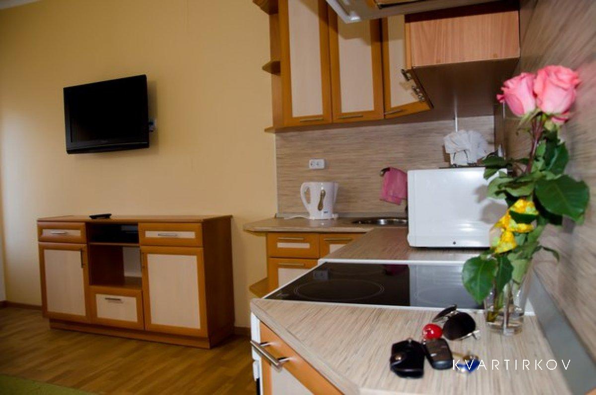 Двуспальный диван, электрическая плита и вся посуда, необходимая для приготовления и принятия пищи, утюг, гладильная доска, сушилка, шкаф-купе с большим зеркалом, ЖК телевизор, стиральная машина (автомат), пылесос, имеется так же балкон, душевая кабина, постельные принадлежности, полотенца, шампунь, гель для душа, зубная паста и щетки, интернет Wi-Fi.