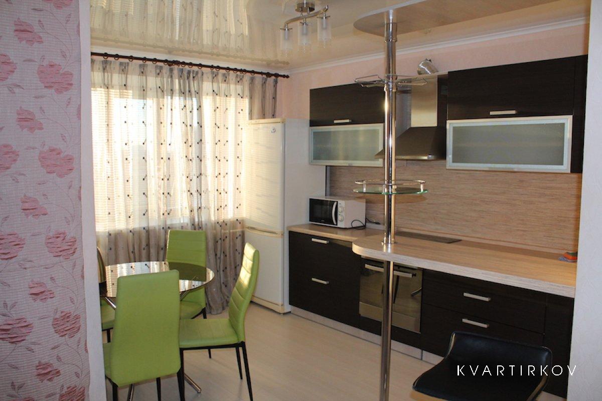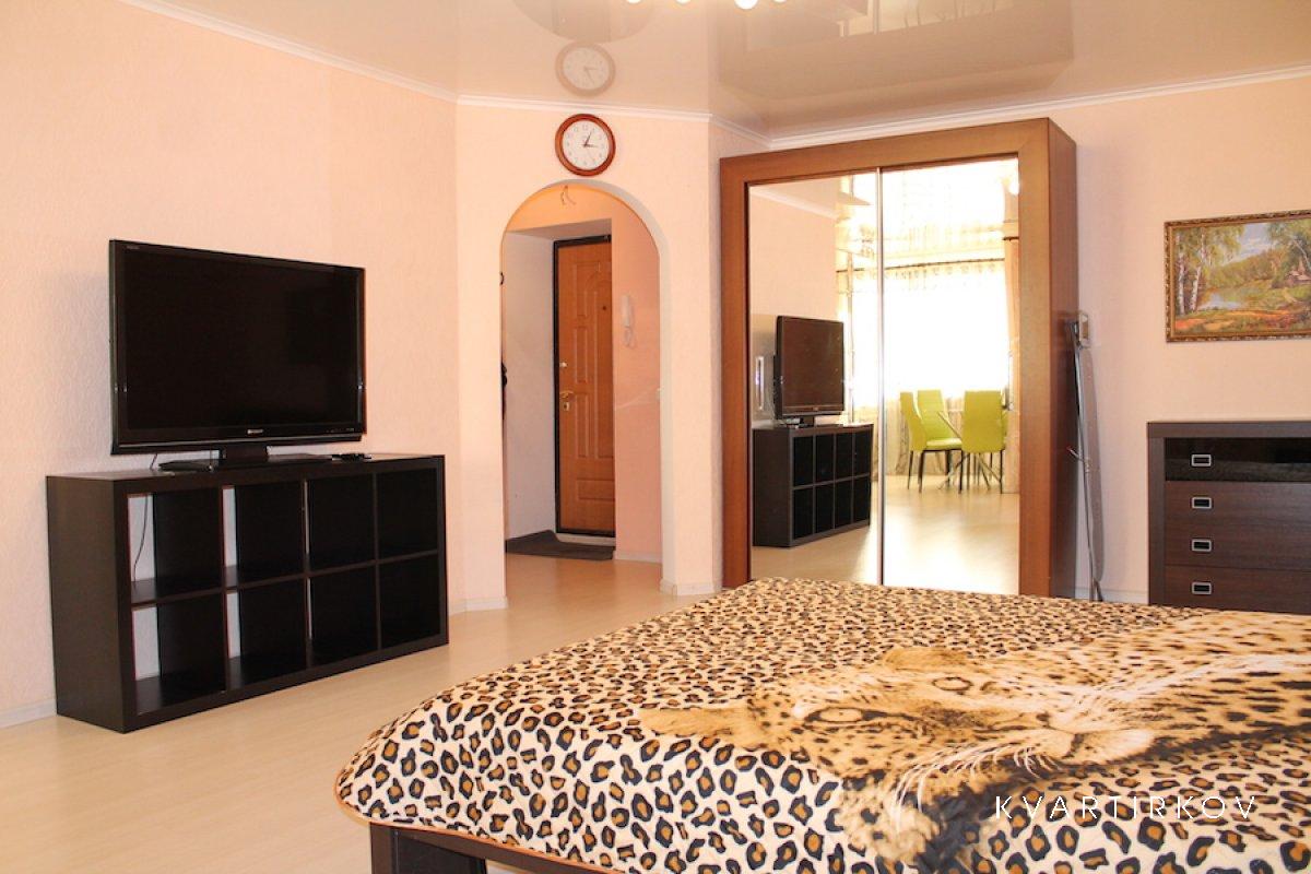 Двуспальня кровать, шкаф, большой плазменный ТВ, кондицонер, 4 стула, стол, барная стойка
