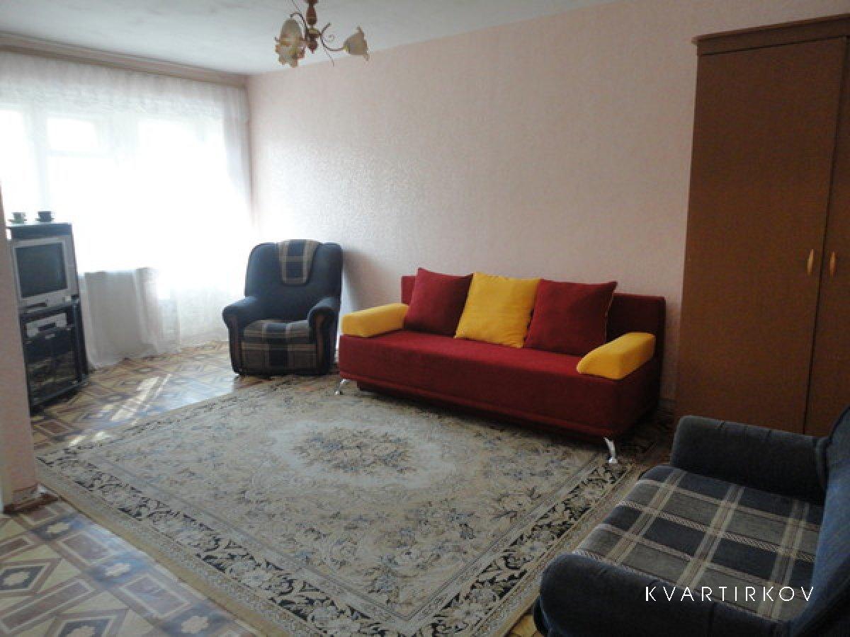 Планировка квартиры: раскладной диван, кресло кровать, шкаф, тумба под ТВ, кухня полностью укомплектована всеми столовыми и кухонными приборами.
