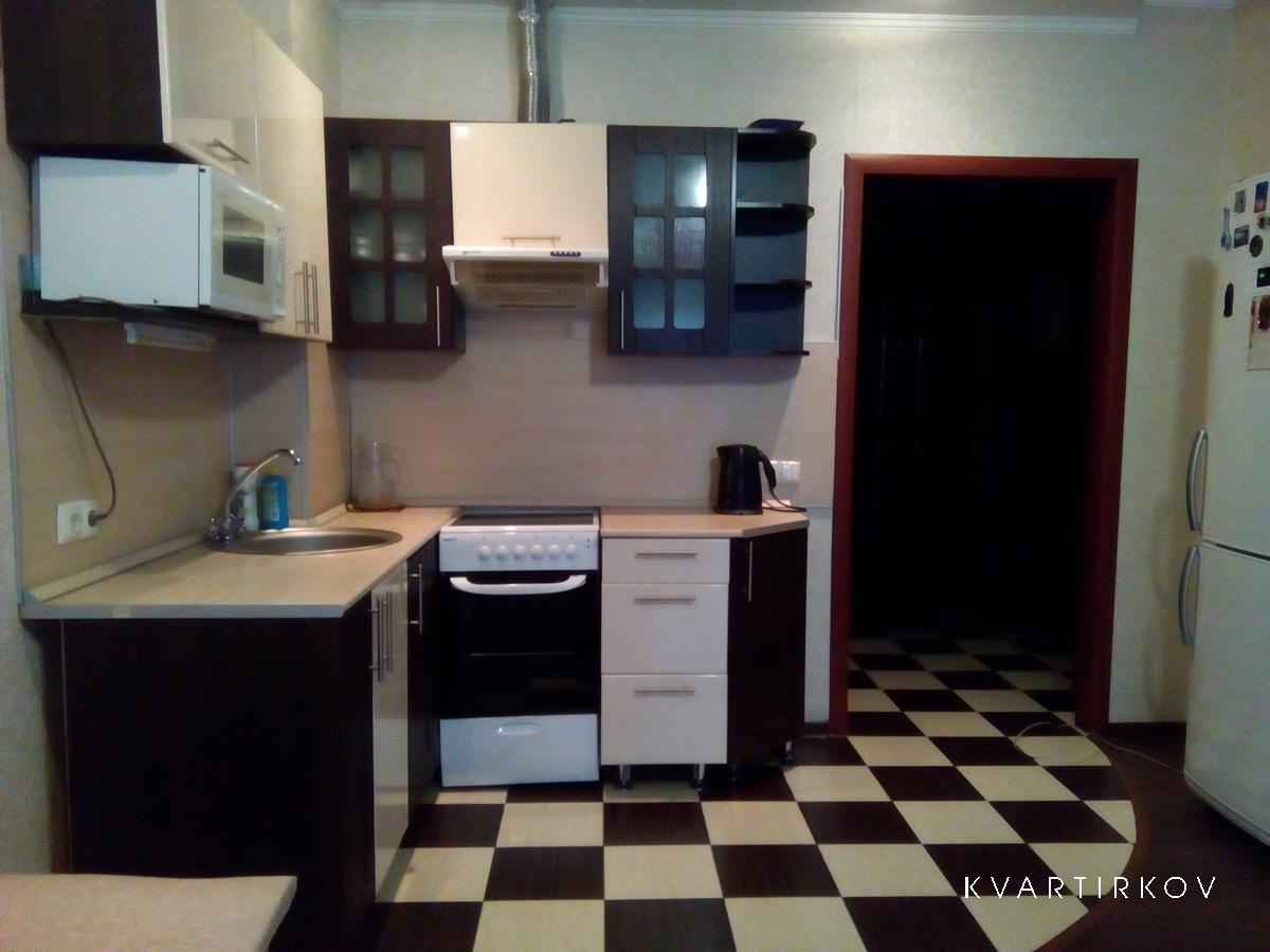 В квартире: 2-х местный диван 2 шт, телевизор, холодильник, электроплита, СВЧ печь,водонагреватель, стиральная машина.